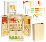 - Bezpieczne, drewniane narzędzia – młotek, śrubokręt i klucze uczą precyzji ruchów oraz koordynacji ręka-oko.