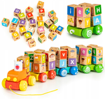 Drewniana kolejka na sznurku do ciągnięcia dla dzieci Pociąg Ciuchcia z klockami Ecotoys