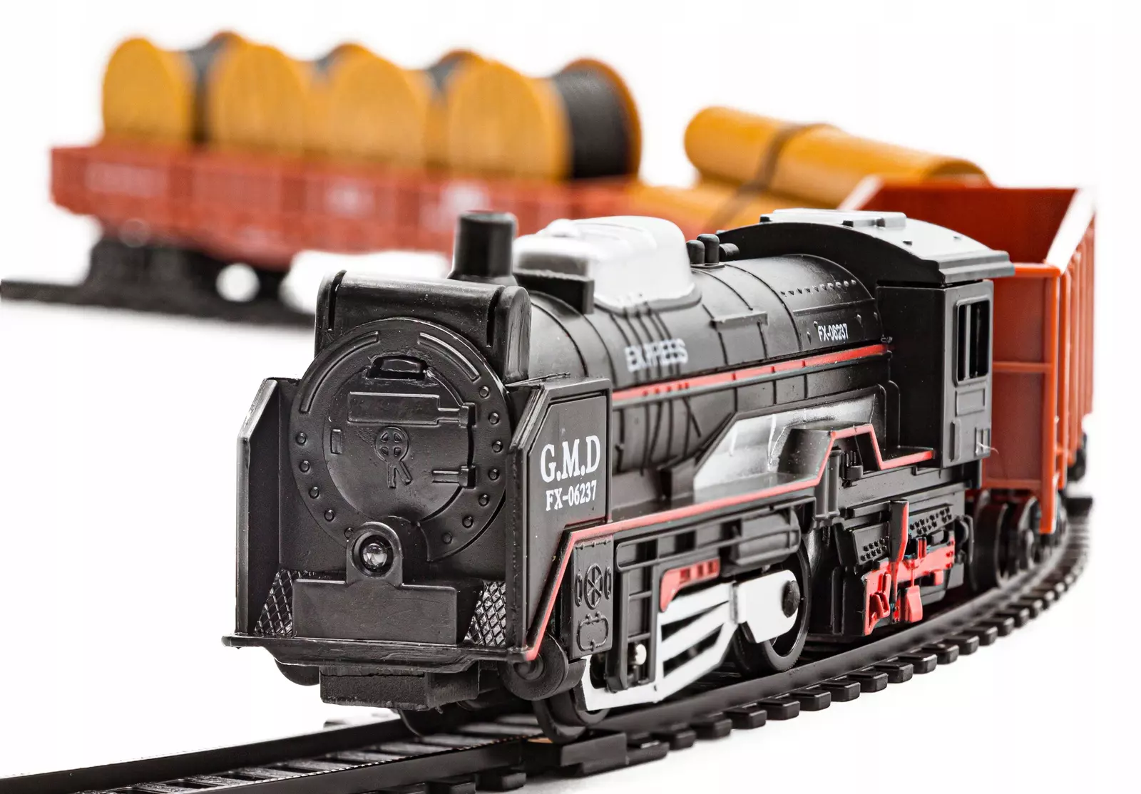 Kolejka elektryczna dymiąca pociąg lokomotywa z wagonami dla dzieci para wodna akcesoria DYM tor 7 metrów