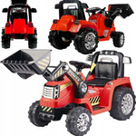 Traktor na akumulator z przyczepą przyczepka pojazd elektryczny 2 silniki światła LED czerwony dla dzieci