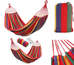 Wiszący dwuosobowy hamak ogrodowy z drewnianym stelażem 150x260cm