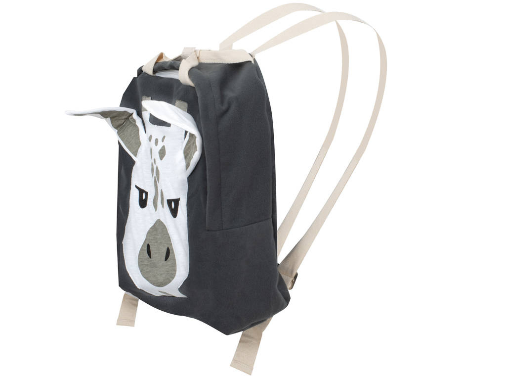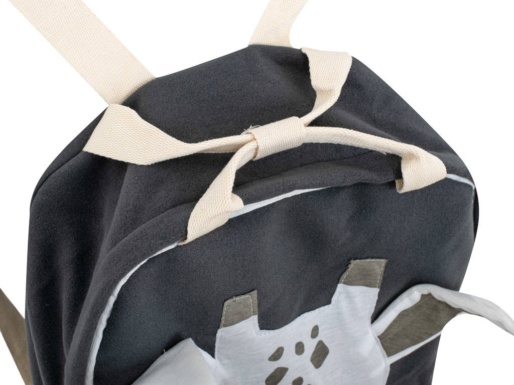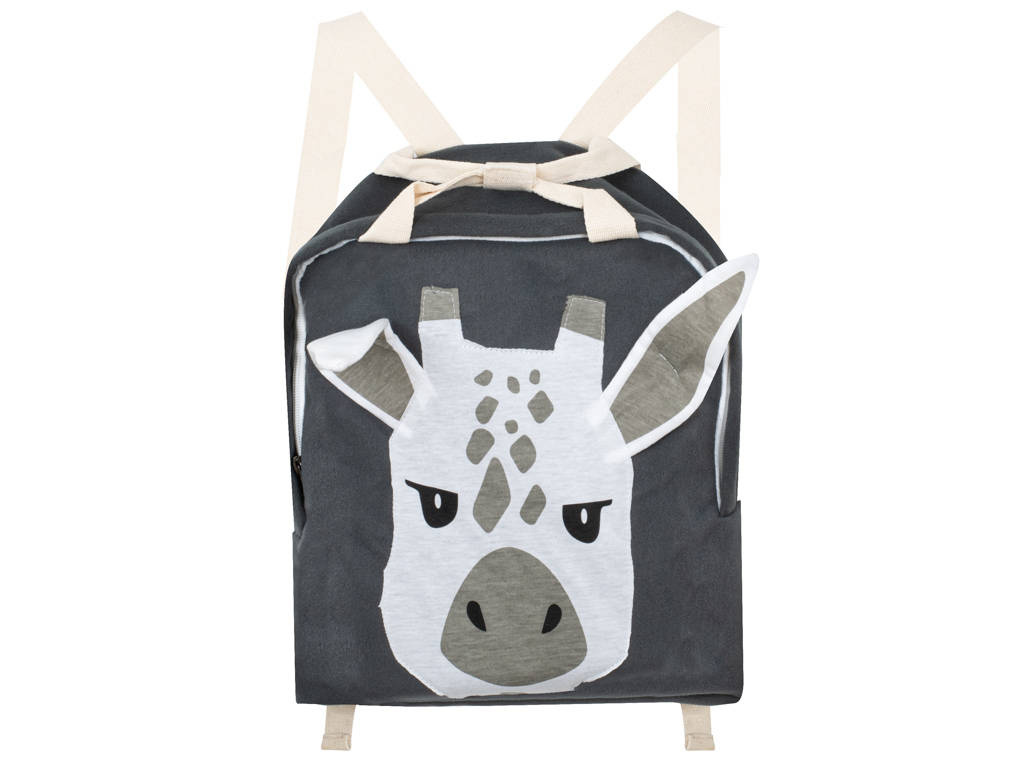 Słodka żyrafa spogląda na nas z małego plecaka. Jest on dedykowany przedszkolakom ze względu na swój średni rozmiar: 34x34x10cm. Jest to jedna komora zapinana na zamek błyskawiczny. Jest wykonany z miłego w dotyku materiału.Plecak wykonany został z tkaniny bawełnianej, którą łatwo utrzymać w czystości. Plecak można prać w ciepłej wodzie z płynem piorącym lun czyścić mokrą ściereczką.
