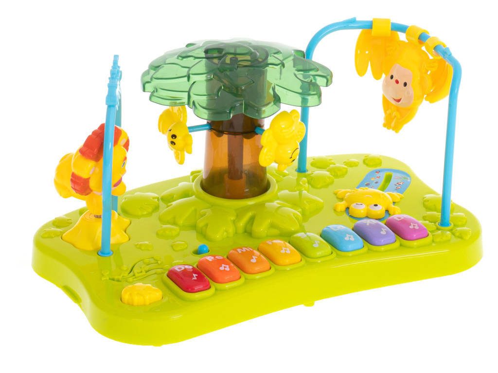 Druga funkcją stolika jest interaktywna zabawa. Nakładka do zabawy gwarantuje długi czas zajęcia uwagi dziecka. Lew na sprężynce i wisząca małpka zainteresują maluszka.Drzewko z obracającymi się pszczółkami oraz ruchoma żabka przykują uwagę. Kolorowe klawisze pianinka uruchamiają tradycyjne dźwięki lub odgłosy zwierząt albo wesołe melodie - w zależności od ustawionego trybu działania zabawki.Krzesełko rośnie razem z dzieckiem pozwala na to trzystopniowa regulacja wysokości oraz położenia stolika. Wysoka jakość materiału z jakiego krzesełko zostało wykonane gwarantuje długie i bezpieczne użytkowanie oraz łatwość czyszczenia. Kompaktowa konstrukcja pozwala na szybkie rozłożenie i złożenie do niewielkich rozmiarów, dzięki czemu możemy mebelek zabierać na rodzinne wyjazdy.