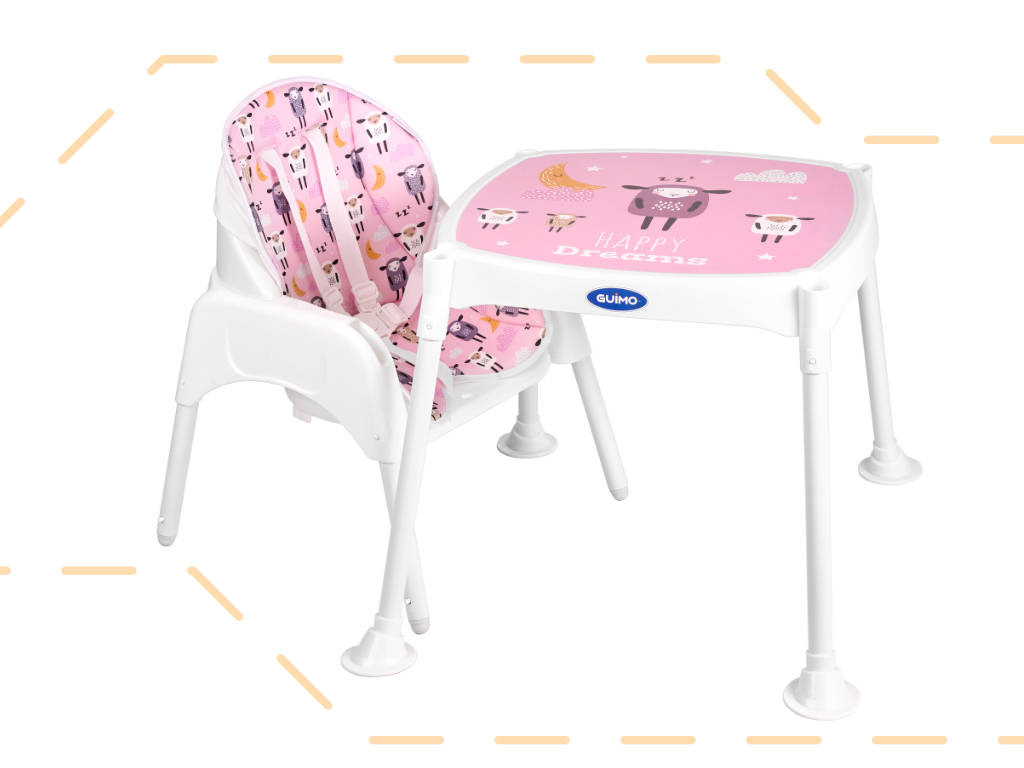 Krzesełko ze stolikiem posiada aż pięciopunktowe paski, którymi, dla bezpieczeństwa, można przytrzymać dziecko. Szerokie rozstawienie nóg krzesła i później stolika, wraz ze specjalnymi szerokimi nakładkami, dają poczucie stabilności oraz zabezpieczają przed niepotrzebnym przesuwem po podłodze. A jeśli już przesuniesz delikatnie stołeczek, nic nie powinno się stać podłodze, dzięki miękkim nakładkom.Konstrukcja bezpieczna, ładna i funkcjonalna. Montaż i demontaż uproszczony do minimum - specjalne przyciski pomogą w zmianach zastosowania. Materiały wysokiej jakości, pozbawione szkodliwych środków np. ftalanów, dają gwarancję i bezpieczeństwa i długiej radości z wykorzystania krzesełka.