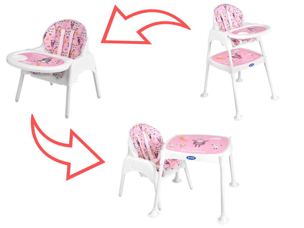Bardzo przydatny mebelek, który służy głównie do pomocy podczas karmienia. Miękki i wygodny, w bardzo ładnym i modnym kolorze, będzie stanowił zarówno zachętę do korzystania, jak i gustowny dodatek do jadalni. Stolik bardzo wysokiej jakości, z materiału, który łatwo utrzymać w czystości. Bardzo trwały i solidnie wykonany. Sam w sobie stanowi aż trzy odrębne mebelki.Dziecko rośnie i z biegiem czasu, można rozmontować krzesełko piętrowe, do postaci osobnego krzesła wraz ze stolikiem. Dodatkowo do wykorzystania pozostaje nakładka, która na pewno znajdzie dużo ciekawych zastosowań. Nie tylko posiłki, ale również gry i zabawy i pewnie również malowanki, kolorowanki. W tym wszystkim stolik będzie bardzo użyteczny.