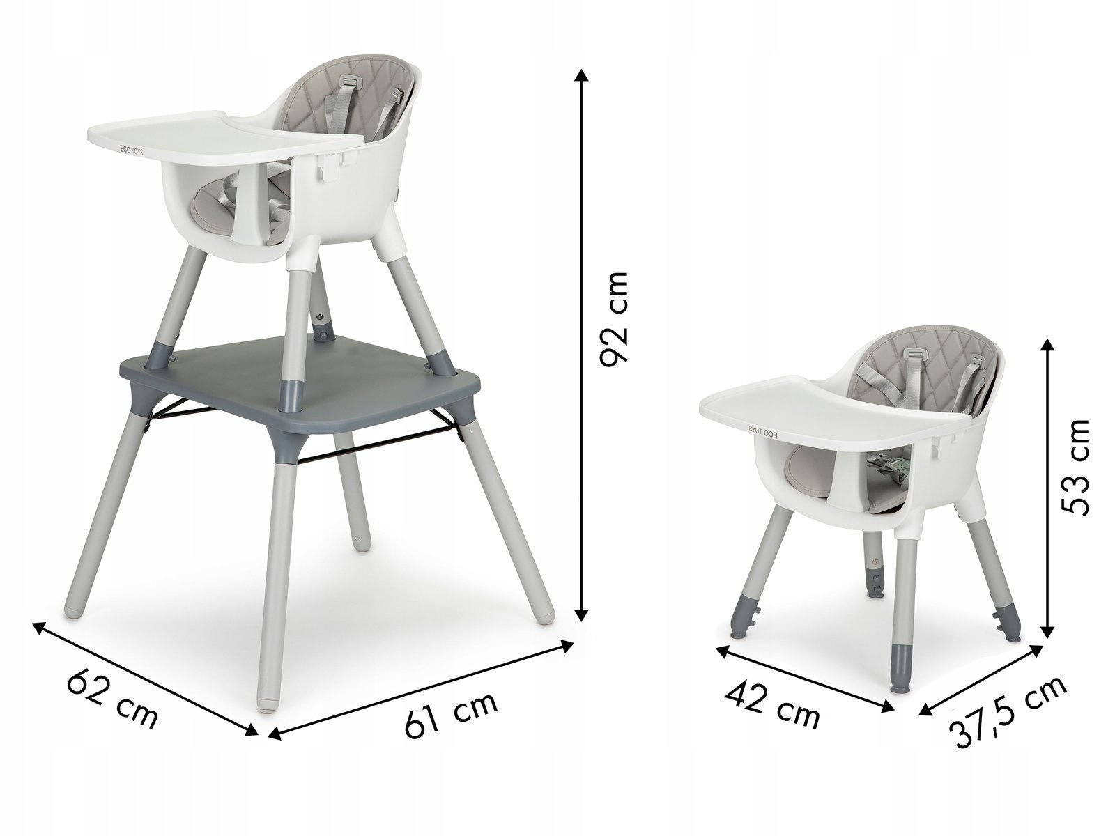 - Wymiary wysokiego krzesełka: 92 x 61 x 62 cm