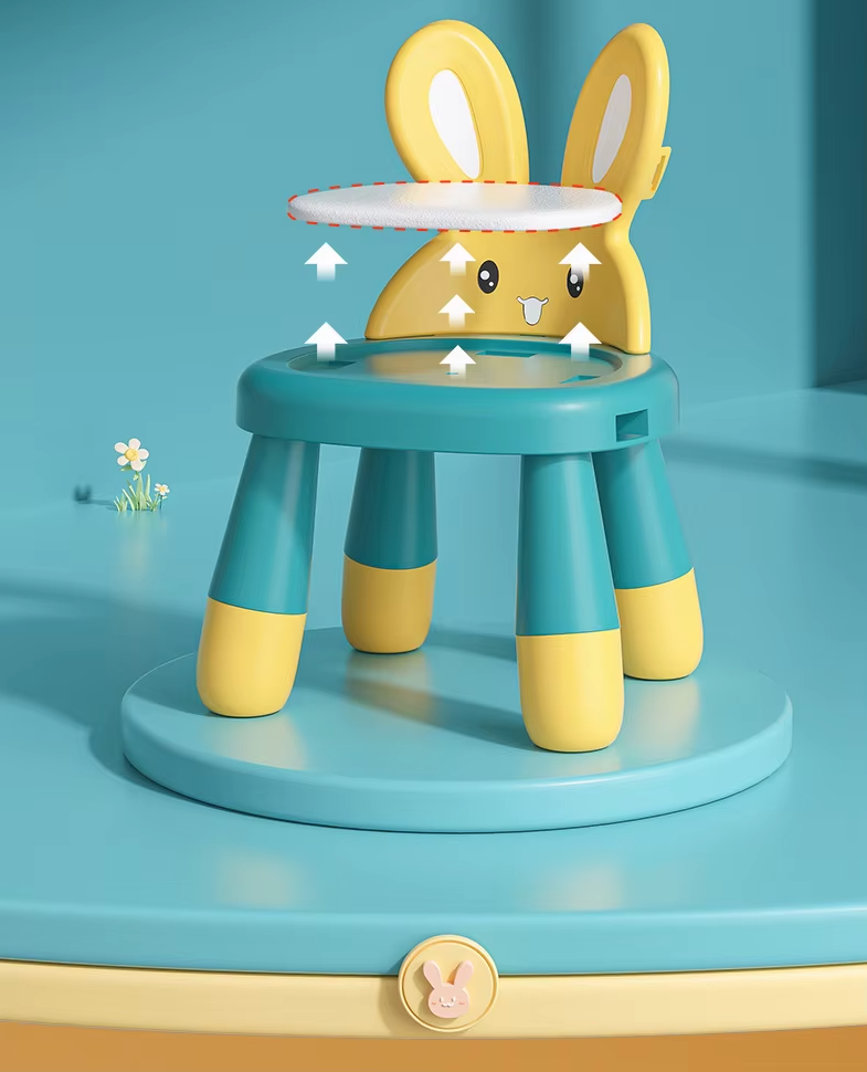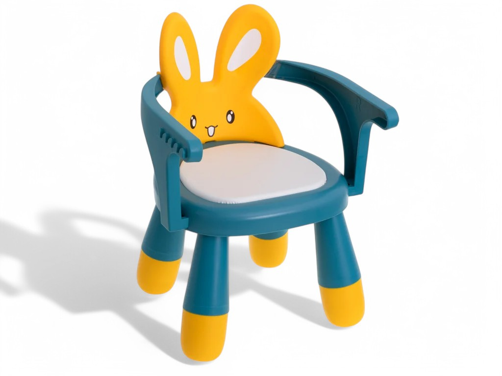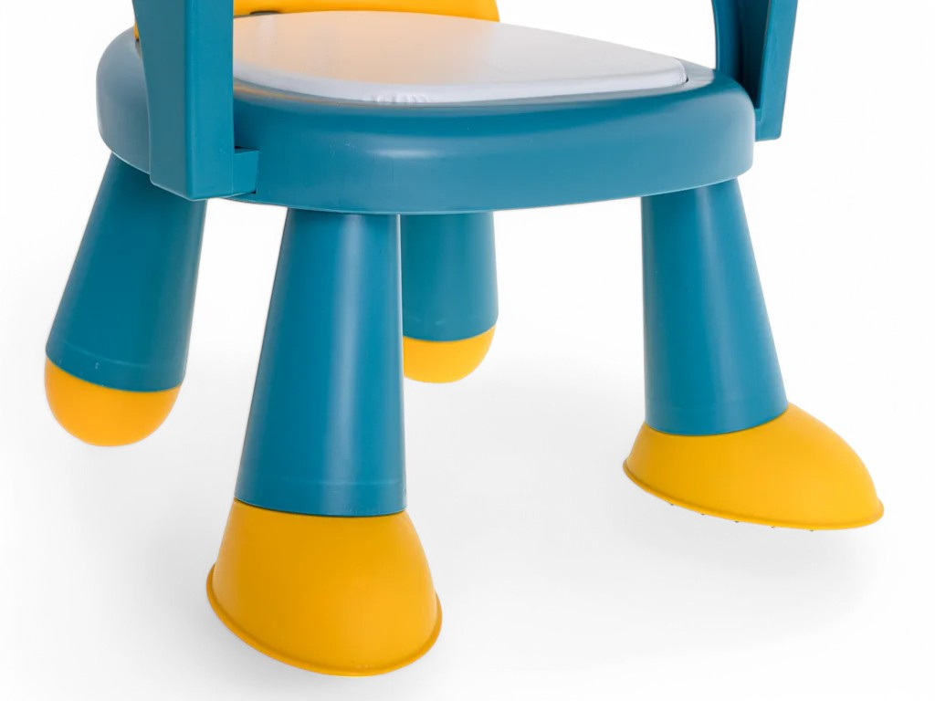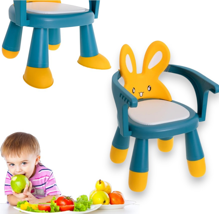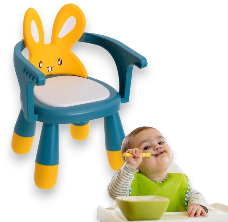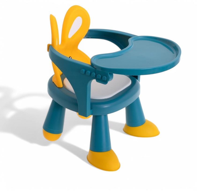 Wielofunkcyjne krzesełko ze stolikiem do karmienia i zabawy. Niezastąpiony przedmiot dla każdego małego dziecka. Jest łatwy i intuicyjny w złożeniu. Posiada możliwość odczepienia stolika oraz regulacji wysokości krzesła. Gdy dziecko urośnie wystarczy podmienić podstawki pod nóżki na wyższe. Swoją konstrukcją krzesełko do karmienia przedstawia uroczego, żółtego króliczka, który zachęci malucha do spędzenia na nim czasu.STOLIK DO ZABAWY DLA DZIECI