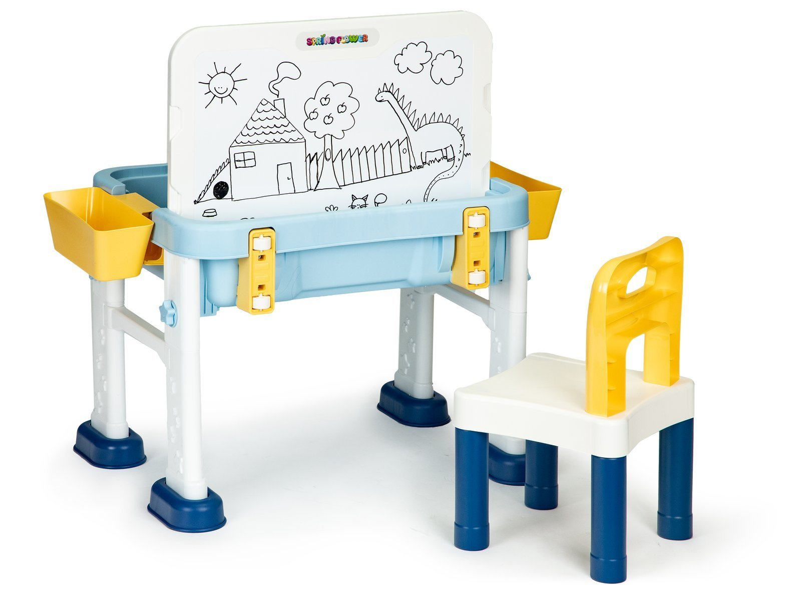 - Edukacyjny stolik dla dzieci z tablicą do rysowania dla dzieci będzie świetnym dodatkiem do każdego pokoju dziecięcego. Dla dzieci od lat 3.