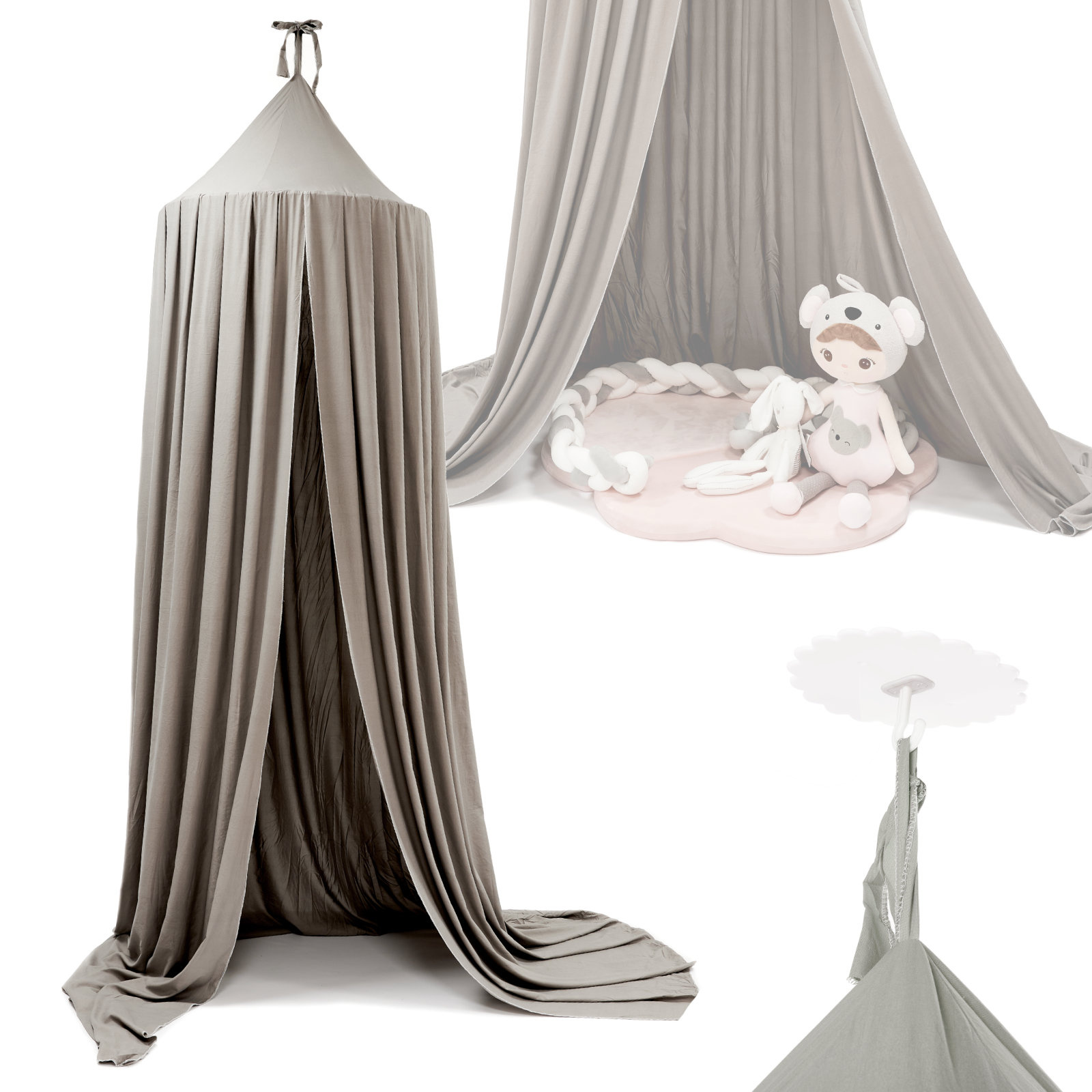 Szary baldachim Wisząca kurtyna Namiot namiocik dla dzieci Tipi do pokoju dziecięcego