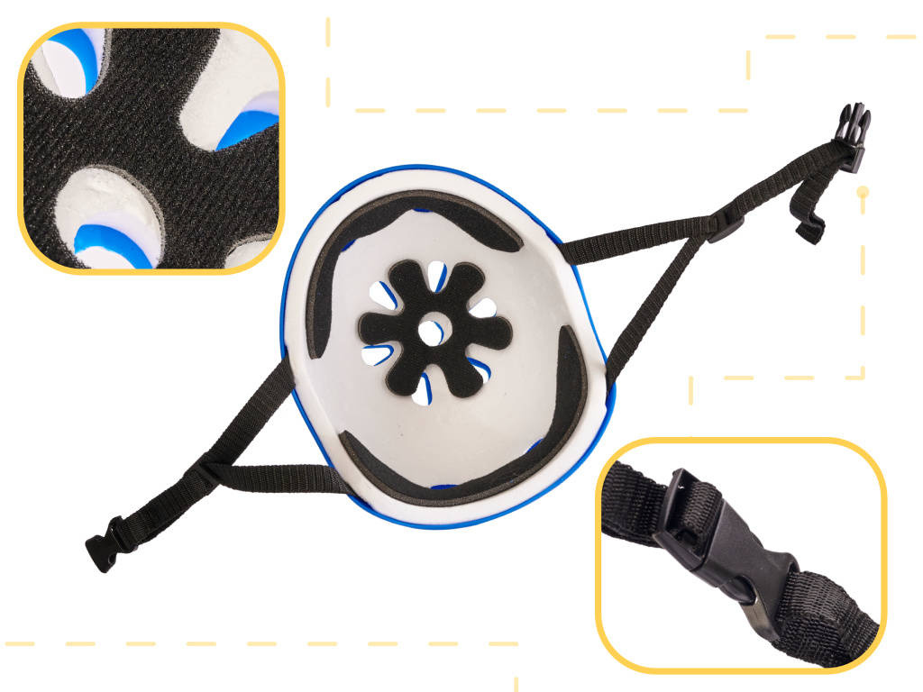 W zestawie znajdziemy też ochraniacze na kolana, łokcie i nadgarstki, co pozwoli jeszcze bardziej chronić przeciw otarciom i ranom. Zestaw jest bardzo przydatny zwłaszcza podczas nauki jazdy na rolkach ale przyda się również rowerzystom, przy jeździe na hulajnodze oraz na nartach czy łyżwach.Podczas dobierania kasku bardzo ważne jest by dokładnie przylegał on do głowy dziecka.