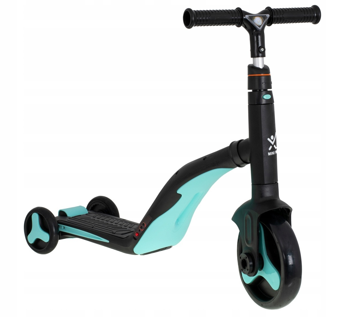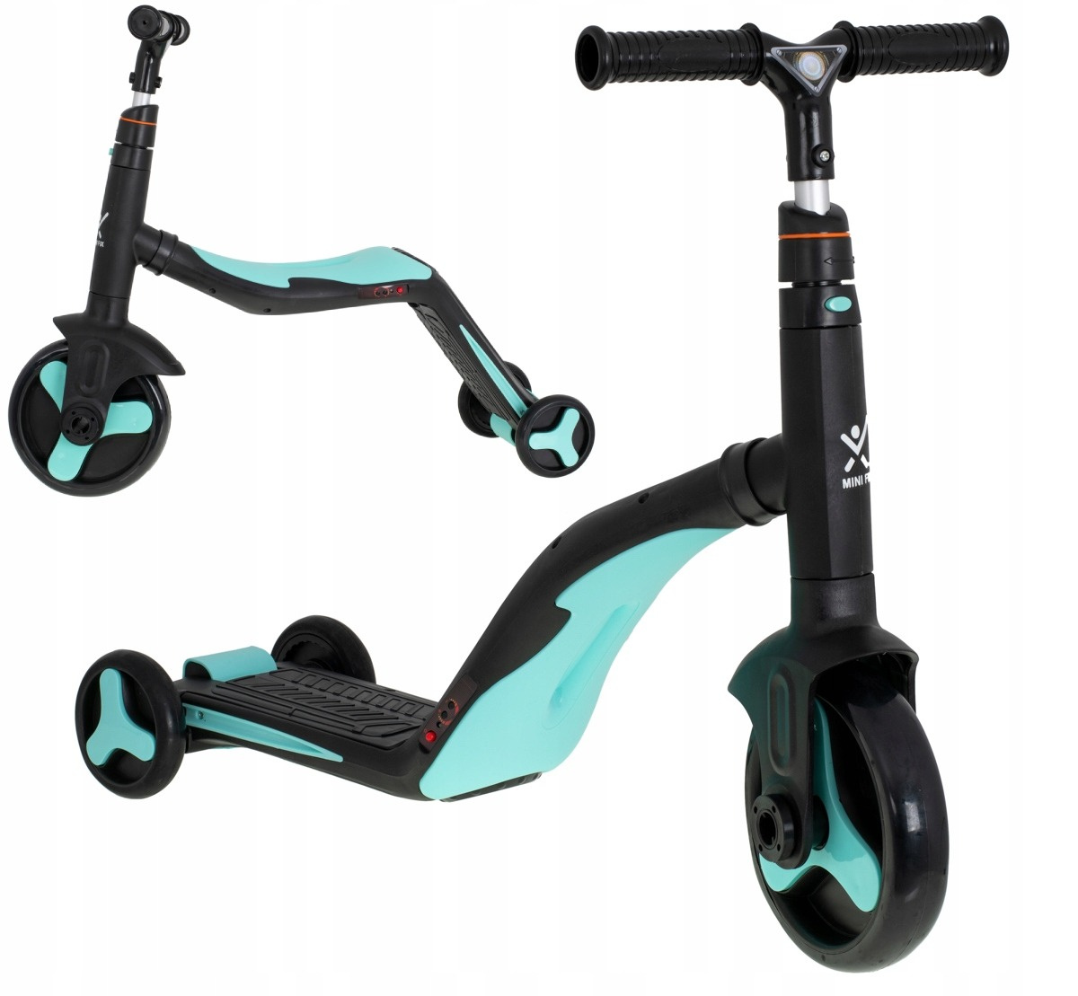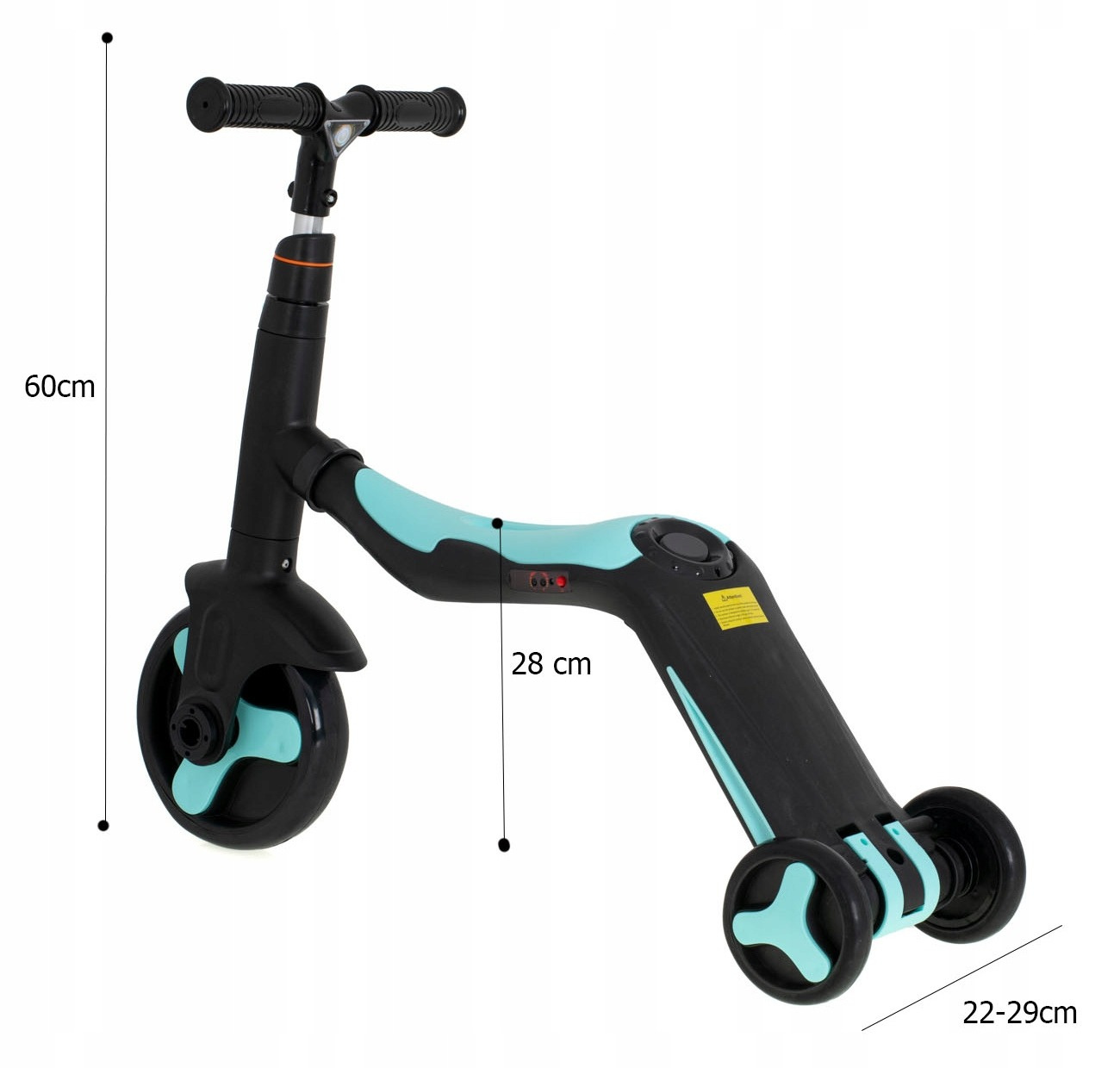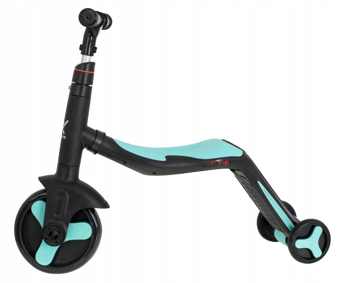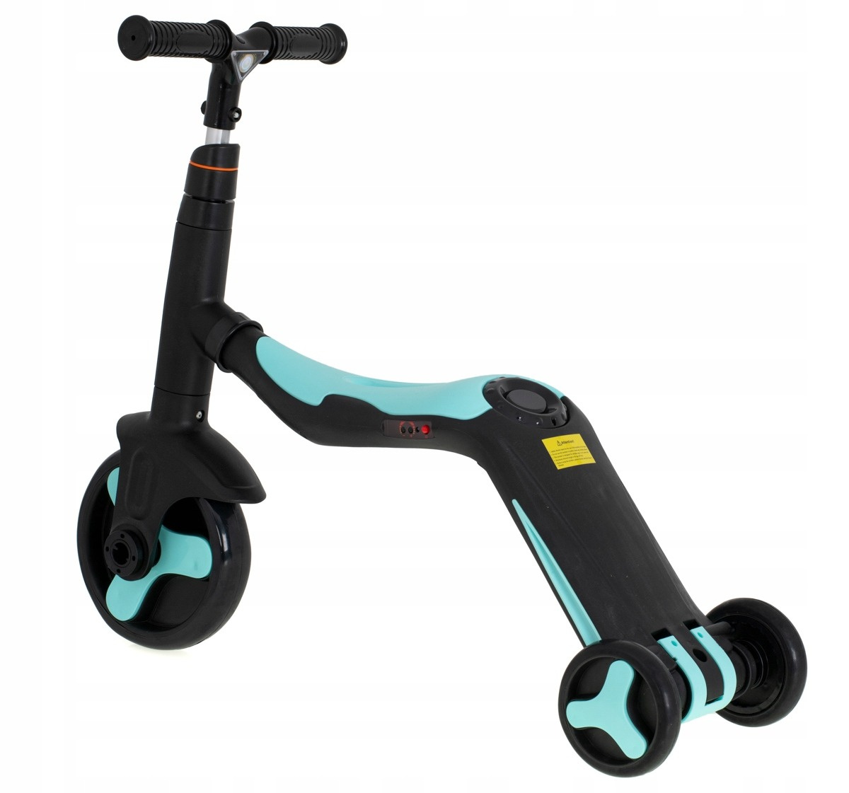- Interaktywna, trójkołowa hulajnoga dla dzieci z efektami dźwiękowymi i świetlnymi. Hulajnogę można przekształcić również w trójkołowy rowerek biegowy lub rowerek klasyczny. Dla dzieci od lat 2.