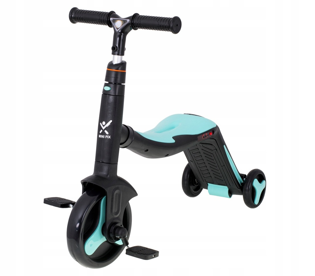 Poszukujesz pomysłu na prezent? Wybierz idealny, jeździk, który z łatwością przekształcisz, w aż 3 pojazdy: hulajnogę, rowerek lub rowerek biegowy. Dodatkowo wyposażony w głośnik, z którego leci radosna muzyka oraz 5 światełek LED. Pojazd możemy dostosować do każdego dziecka, dzięki 3-stopniowej regulacji kierownicy. W łatwy sposób możemy również montować i demontować pedałki, tworząc odpowiednio pełnowymiarowy rowerek, a na czas jazdy, pedałki będą bezpiecznie przechowane i usztywnione magnesem w specjalnej szufladzie.DANE TECHNICZNE: