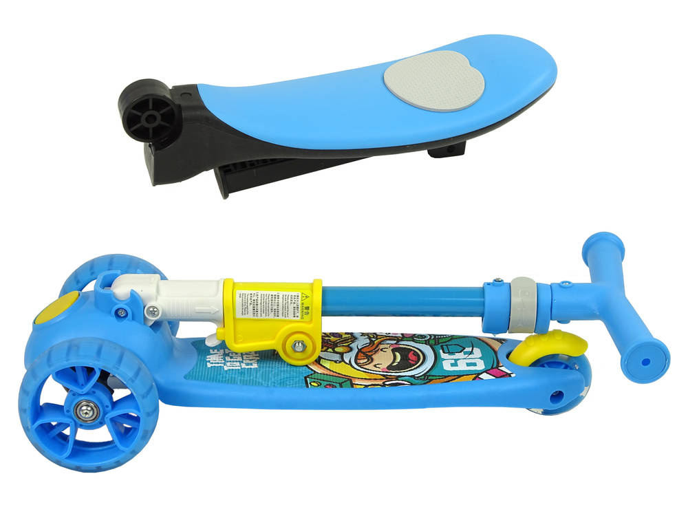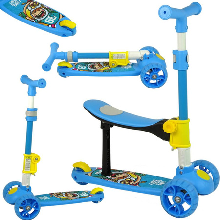 Nowoczesna hulajnoga posiada niebieski kolor oraz ciekawą grafikę. Dodatkową funkcją jest możliwość zamontowania siedziska, bardzo przydatną gdy dziecko szybko się męczy. Przedmiot dostarczy niezapomnianych wrażeń oraz chwile cudownej zabawy. Zaletą hulajnogi jest regulowana wysokość kierownicy, dzięki czemu może ona posłużyć na długie lata. Antypoślizgowy podest sprawia, że nóżka dziecka nie będzie się ześlizgiwać podczas jazdy. Trójkołowa hulajnoga jest idealnym pomysłem na prezent dla dzieci, które nie przepadają za rowerkami.DANE TECHNICZNE