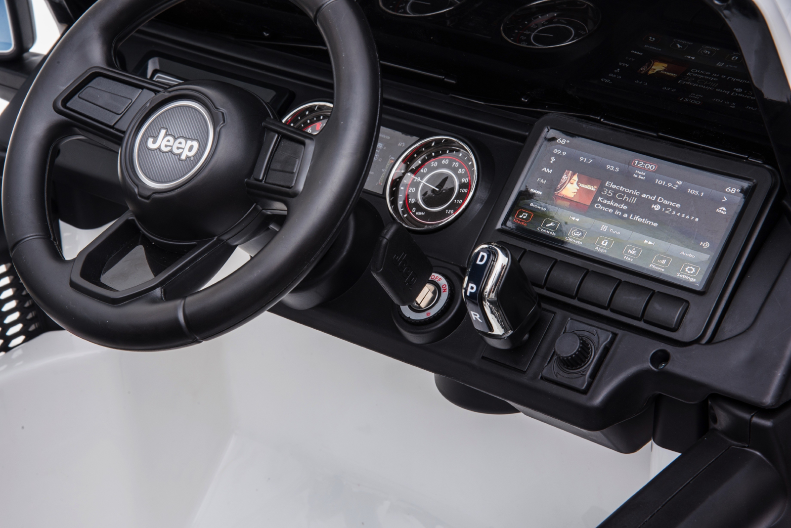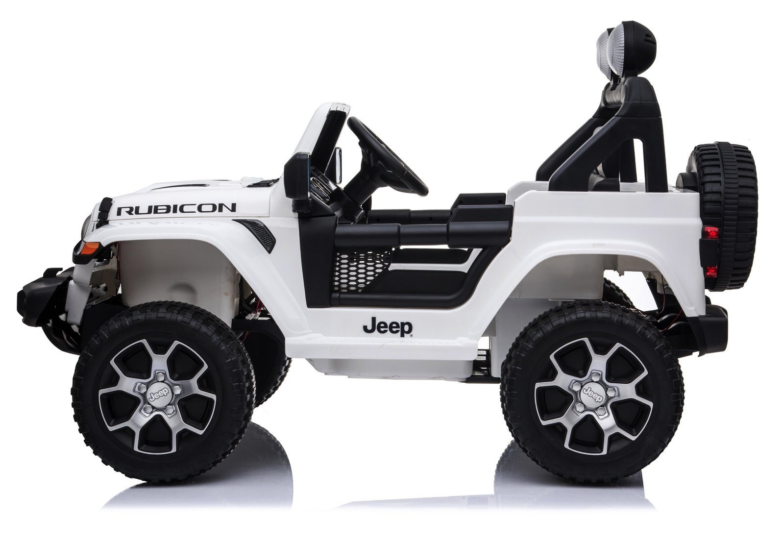 Auto wizualnie odwzorowuje jego pełnowymiarowego odpowiednika, co widoczne jest już na pierwszy rzut oka posiadając wszystkie cechy wizualne charakterystyczne dla tego modelu. Pojazd dla dzieci wyposażono w miękkie opony, dzięki czemu, podobnie jak oryginalny Jeep, może on pokonywać niewielkie nierówności, a duży prześwit pozwala pokonywać niewielkie przeszkody. Dziecko może samo kontrolować auto, jednak jest ono wyposażone w pilot zdalnego sterowania, przez co nie zostaje ono bez opieki. Autko posiada otwierane drzwi, a dodatkowo wyposażono je w panel muzyczny umożliwiający odtwarzanie ulubionej muzyki podczas jazdy, z radia lub przez USB.