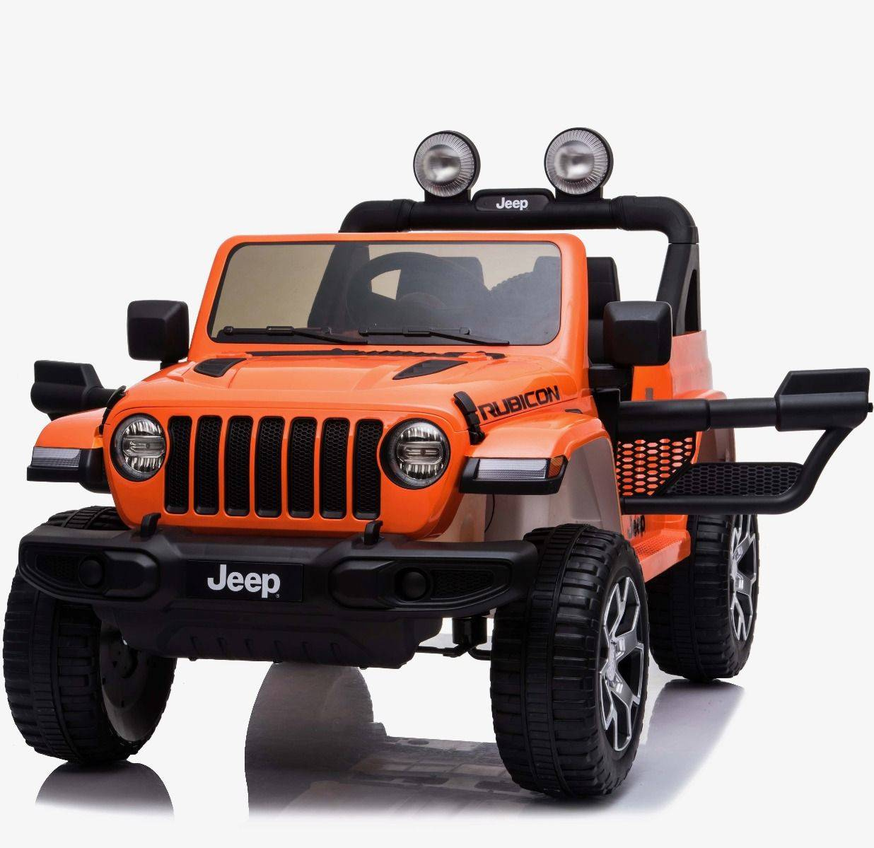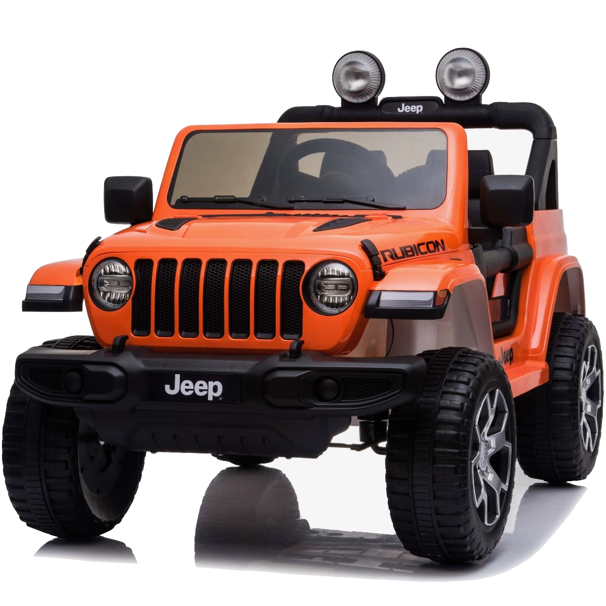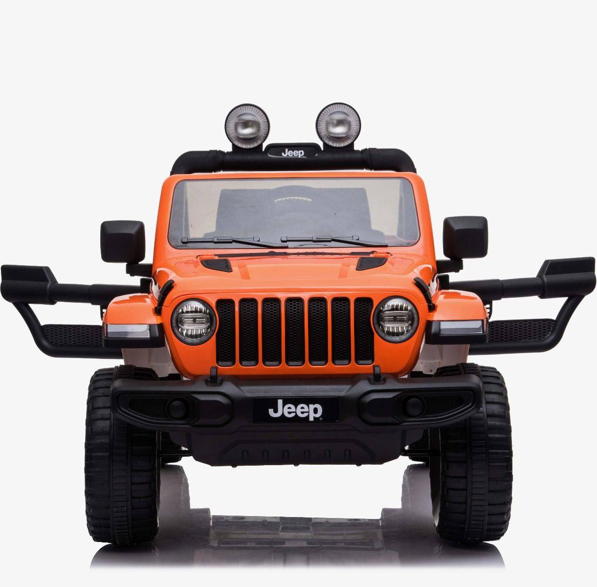 Samochód na akumulator Jeep Wrangler Rubicon pomarańczowy elektryczny Auto dla dzieci 2 silniki światła LED