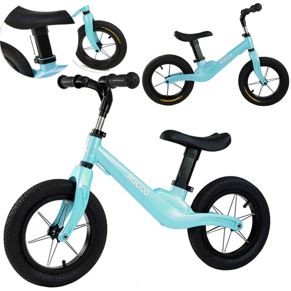 Rower rowerek biegowy Rocco dla dzieci Jeździk 3+ niebieski z regulowanym siedzeniem