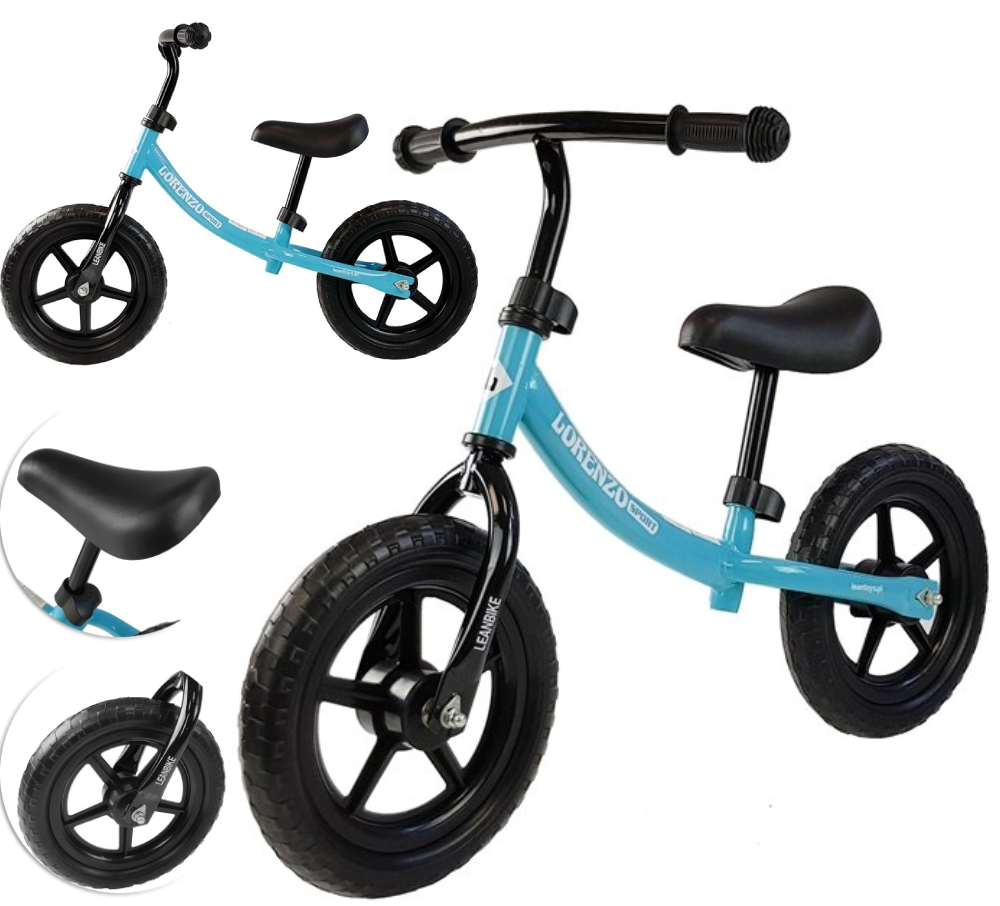 Niebieski rowerek biegowy Lorenzo, idealny dla malucha uczącego się stawiać pierwsze kroki. Jeździk wspiera rozwój Twojego dziecka ucząc go utrzymywania równowagi oraz wspomagając jego koordynację ruchową. Rowerek posiada mnóstwo udogodnień, które zapewnią komfort oraz bezpieczeństwo Twojego brzdąca. Funkcja regulacji wysokości siodełka pozwoli na dostosowanie wielkości rowerka do wzrostu malucha a miękkie, pompowane koła zapewnią dobrą przyczepność i nie porysują podłogi.DANE TECHNICZNE:
