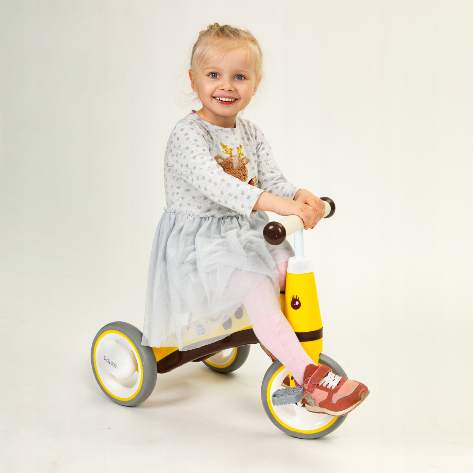 Rowerek biegowy dla dzieci z trzema, dużymi kołami sprawdzi się idealnie w roli pierwszego rowerka do nauki jazdy. Stabilna, stalowa rama, miękkie, antypoślizgowe uchwyty oraz duże, nie rysujące podłogi koła zapewnią bezpieczeństwo Twojemu maluchowi podczas jazdy. Dzięki niemu, Twoje dziecko nauczy się umiejętności balansowania i utrzymywania równowagi. Idealny dla dzieci od 12 miesiąca życia.DANE TECHNICZNE: