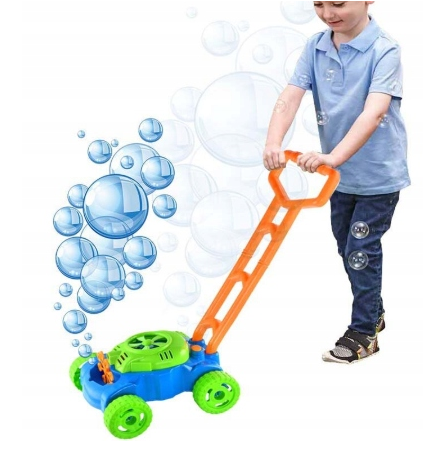 - Kosiarka puszczająca bańki mydlane sprawi wiele zabawy każdemu dziecku. Wystarczy wlać płyn, nacisnąć guzik i zacząć pchać ogrodowy sprzęt.