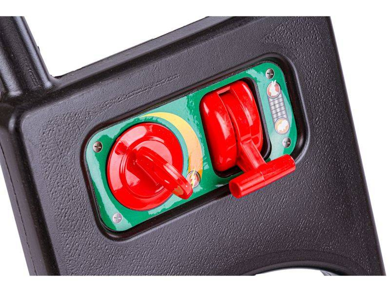 Zabawa połączona z nauką jest najlepszą formą edukacji. Kosiarka do trawy może pełnić funkcję pchacza dla dzieci, które stawiają już pierwsze kroki. W jej głównym panelu zostały umieszczone kolorowe kuleczki, które podczas jazdy wesoło skaczą. Aby odpalić sprzęt należy pociągnąć za linkę, która po szarpnięciu będzie się chować i wydawać odgłosy zwijania. Kosiarka posiada również panel do sterowania. Znajduje się na nim pokrętło na przeskakującej zębatce oraz atrapa uchwytu regulującego prędkość. Zabrakło paliwa? Nic strasznego ponieważ w zestawie znajduje się czerwony kanisterek. O bezpieczeństwo podczas prac ogrodowych zadba dołączony kask. Zagwarantuj dziecku mnóstwo frajdy i pozwól wcielić się w rolę ogrodnika.DANE TECHNICZNE