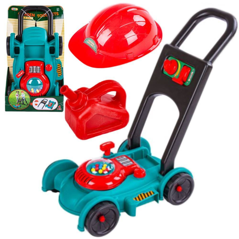 Zabawkowa kosiarka do trawy dla dzieci chodzik pchacz kanister kask