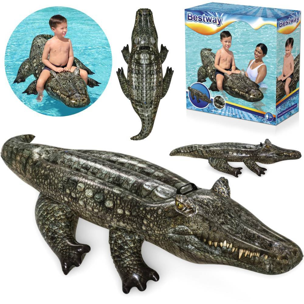 Duży materac w postaci krokodyla na pewno przykuje uwagę wszystkich wokół podczas wypoczynku nad wodą lub na plaży. Stabilnie unosi się na wodzie, dzięki czemu zapewnia komfort podczas kąpieli. Dmuchany krokodyl został wykonany z wytrzymałego materiału PVC, odpornego na działanie promieni słonecznych oraz uszkodzenia. Materac został wyprodukowany przez popularną wśród akcesoriów wodnych firmę – Bestway.KROKODYL DO PŁYWANIA W WODZIE BESTWAY