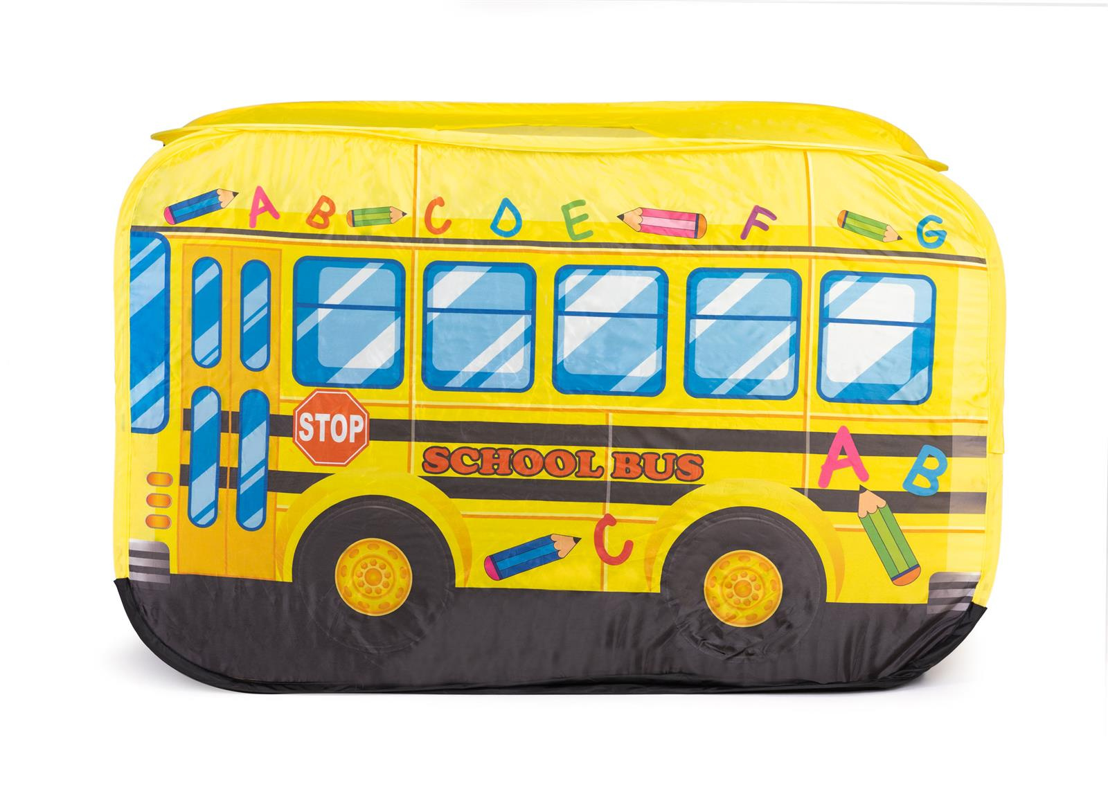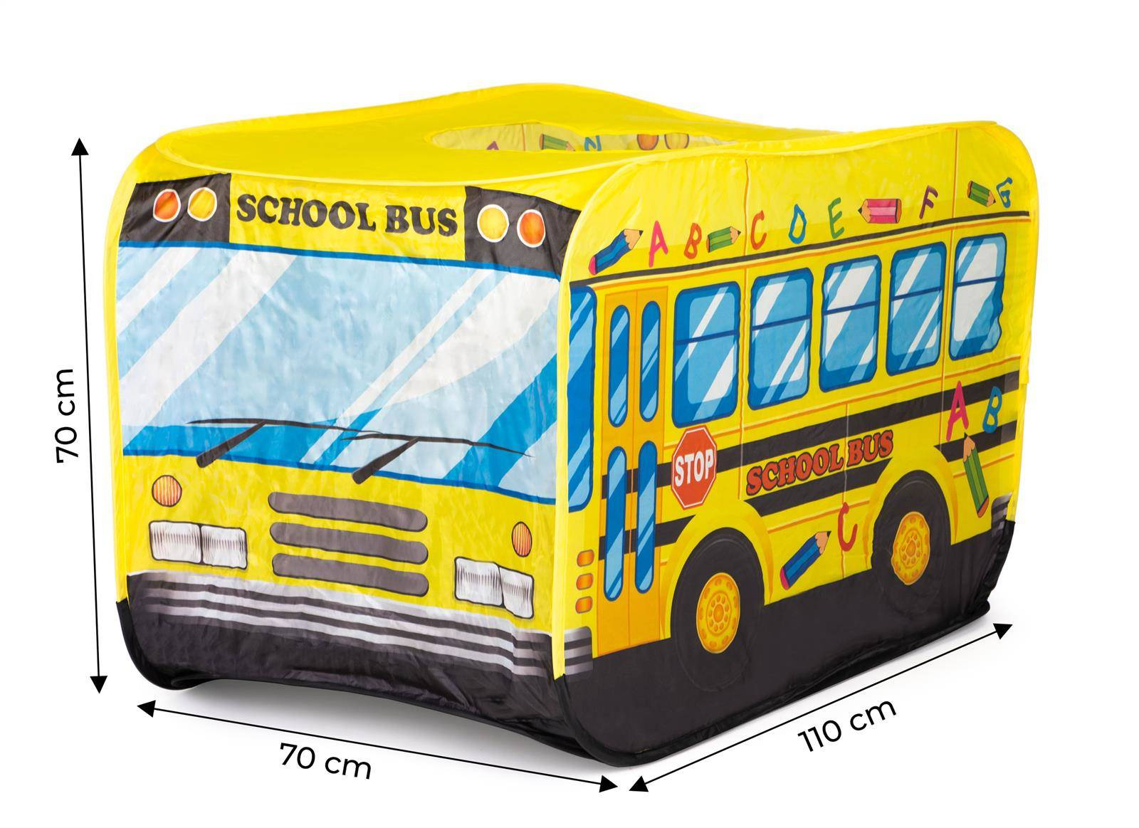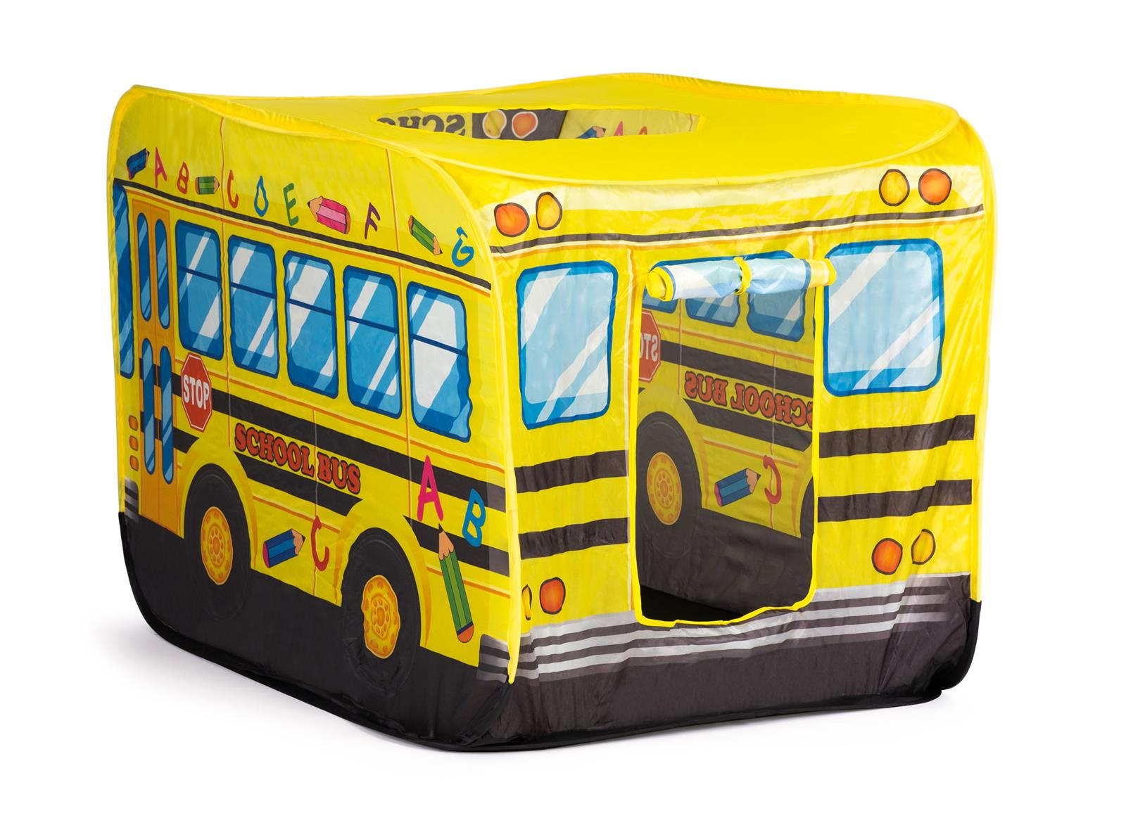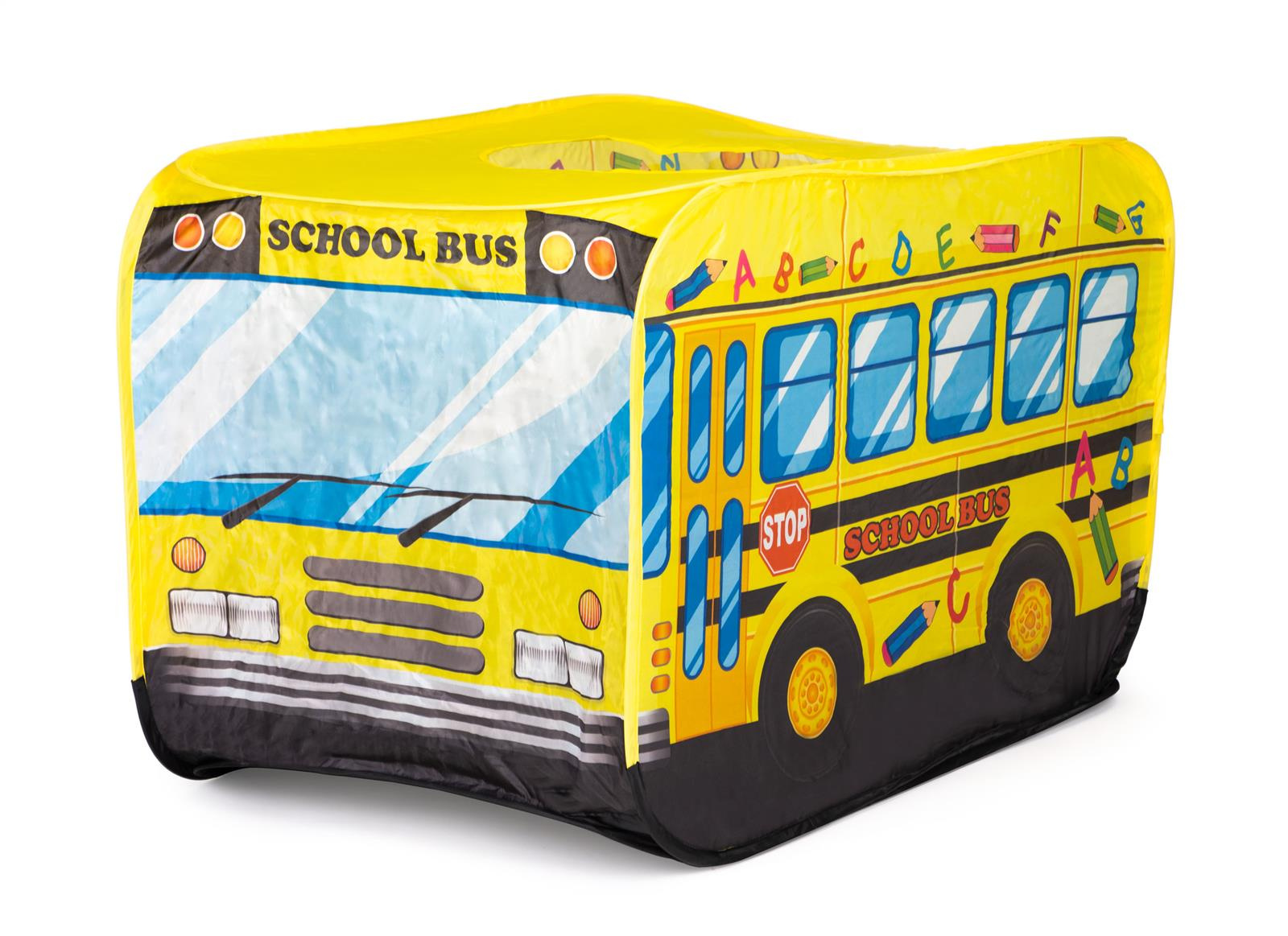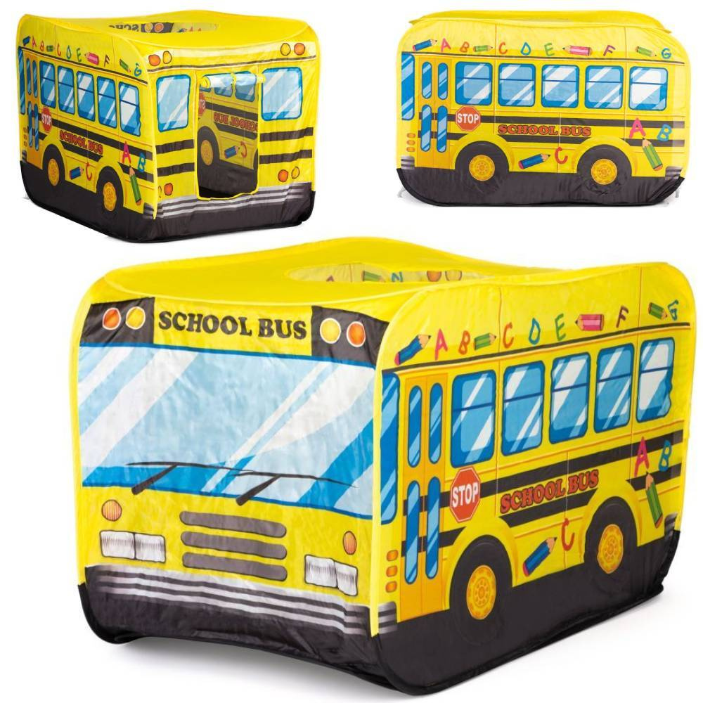 - Namiot w motywie żółtego autobusu szkolnego. Może stać się ulubionym miejscem do zabaw dziecka. Zabawkę można rozstawić w domu lub w ogrodzie. Namiocik posiada samo-rozkładający się stelaż. Dla dzieci od 3 lat.