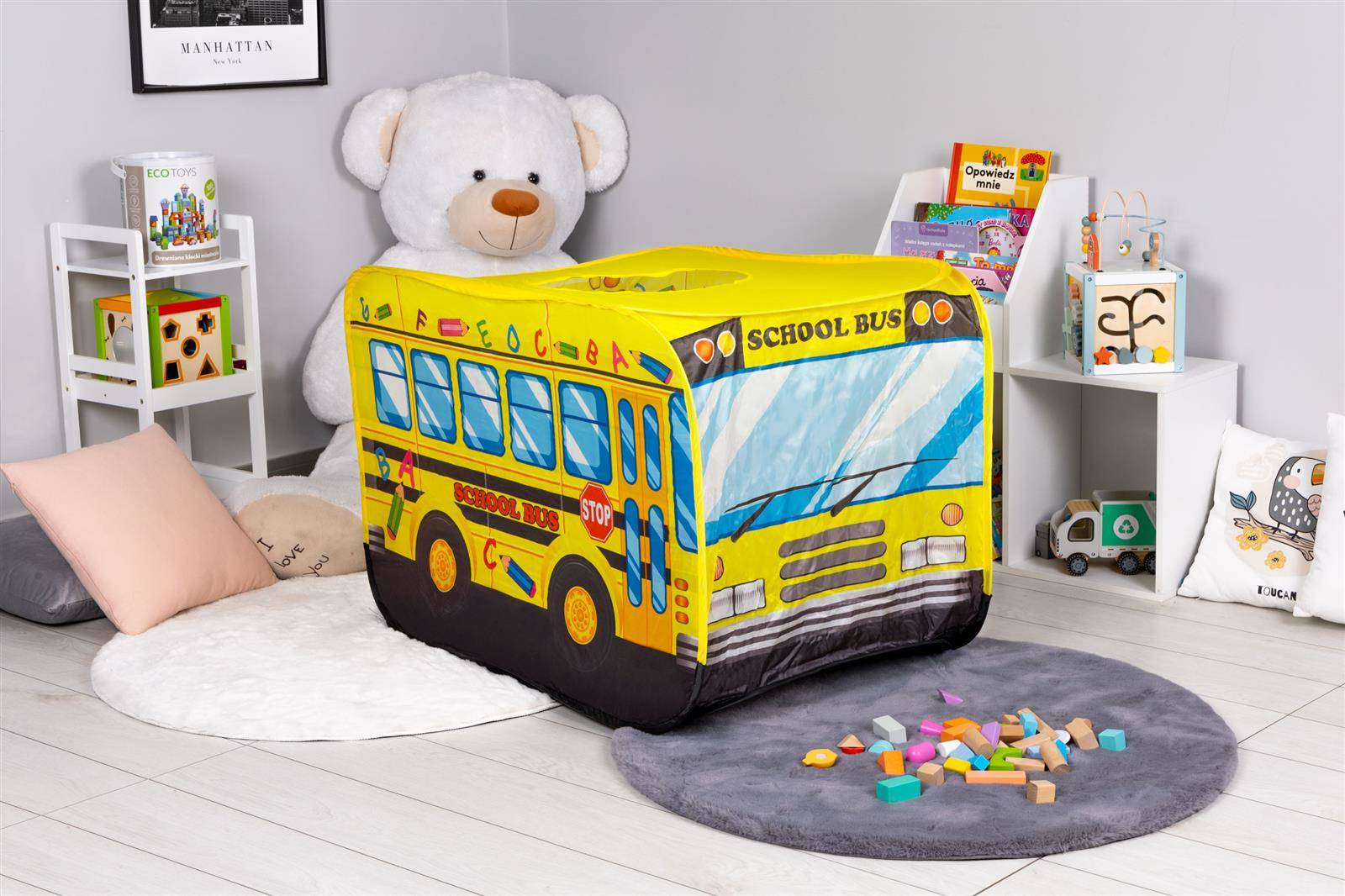 Namiocik namiot dla dzieci plac zabaw domek żółty autobus szkolny Iplay