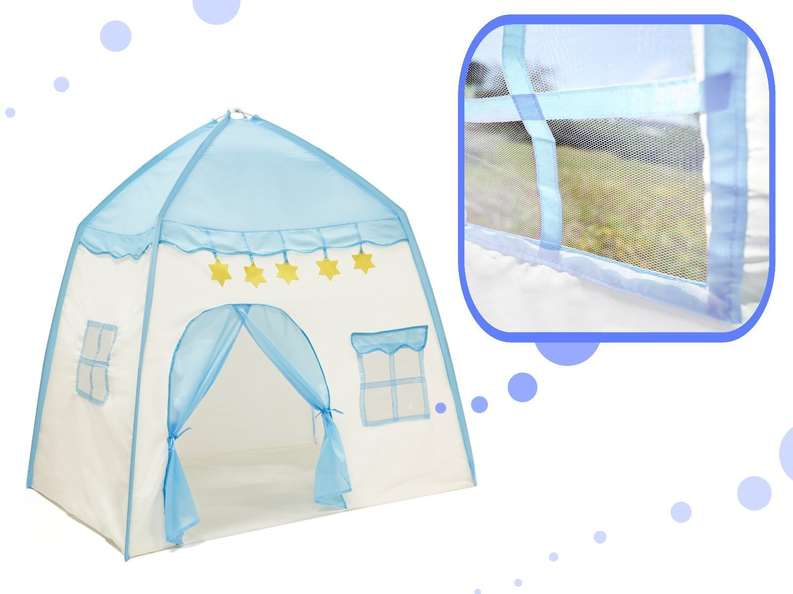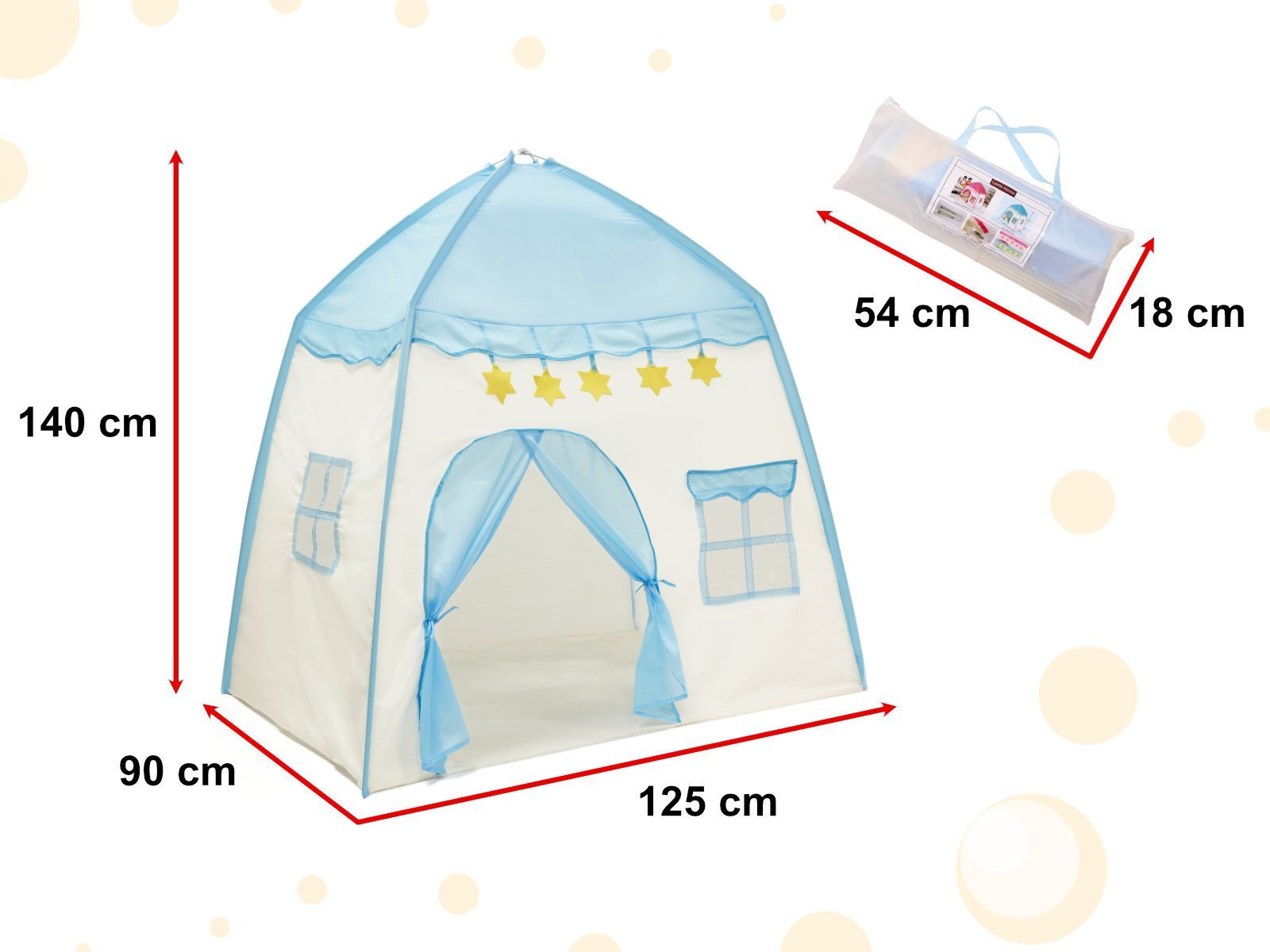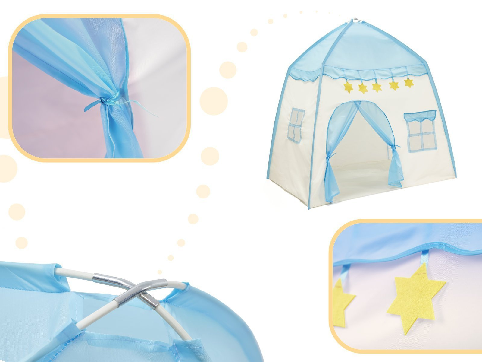 O takim domku marzy każde dziecko. Przestronny, ładny, z oknami i szerokim wejściem. Może zamienić się w co tylko dziecko wymyśli. Może być bazą, zamkiem księcia lub księżniczki, domkiem lub tajną kryjówką.Namiot ma okienka z "szybkami" z siatki zapewniające przewiew i spełniające rolę moskitiery oraz zasłonkę w drzwiach którą można zasłonić wejście. Stożkowy dach zapewnia atrakcyjny wygląd a wesołe gwiazdki są dodatkowym elementem dekoracyjnym.