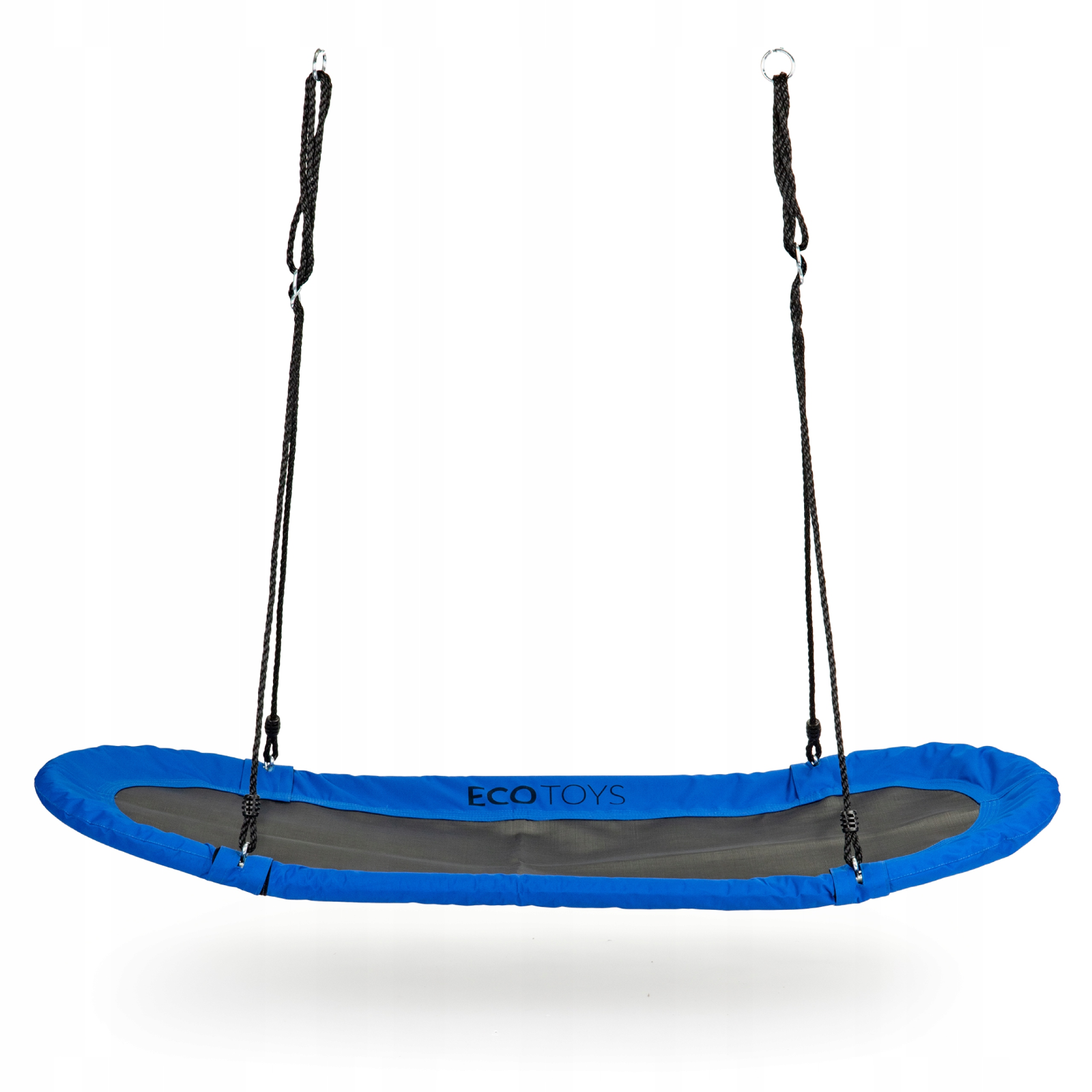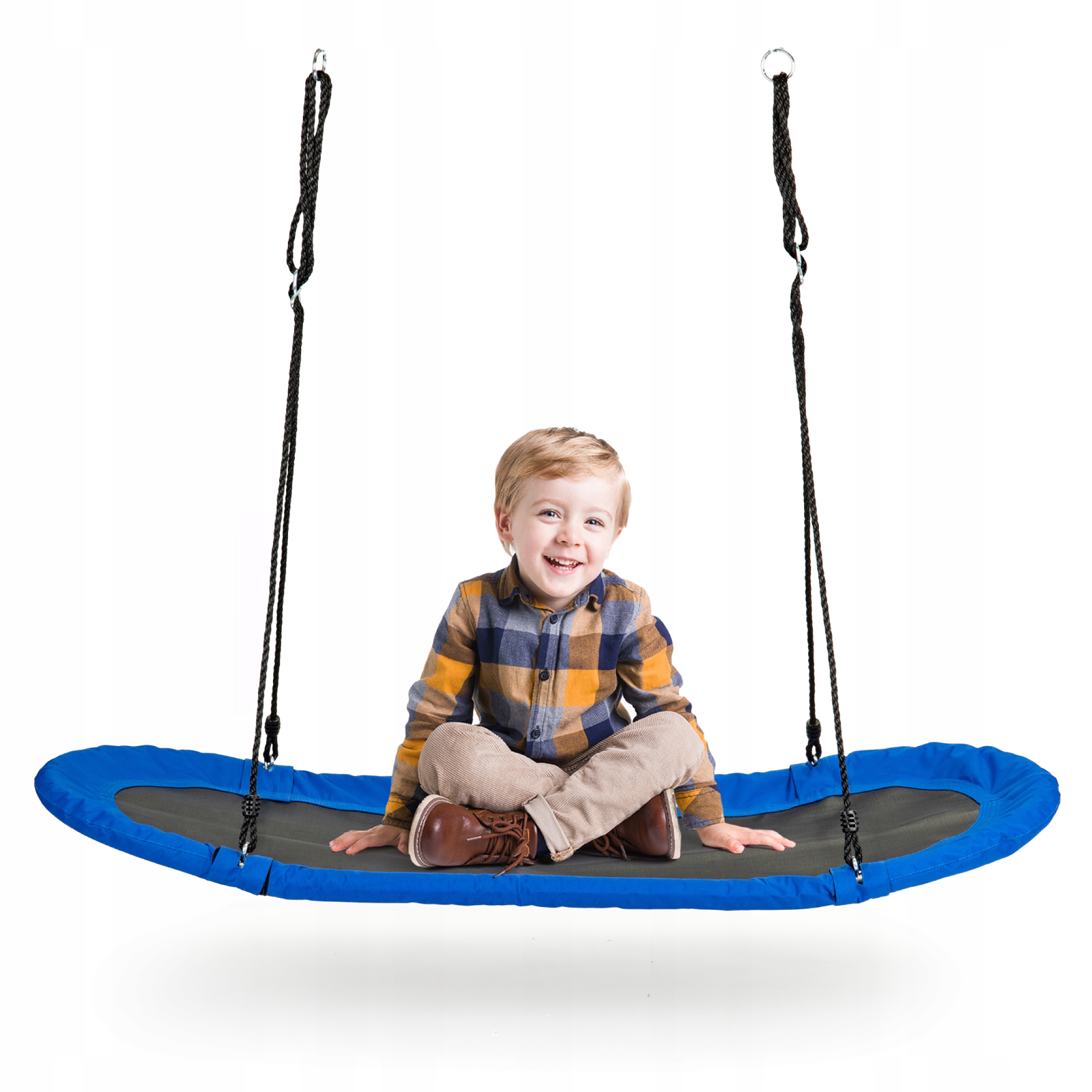 - Niebieska huśtawka ogrodowa dla dzieci o średnicy 165 cm zapewni świetną zabawę na świeżym powietrzu. Dzięki regulowanym linkom, dostosujesz ją do wzrostu swojego dziecka. Do użytku od lat 3.