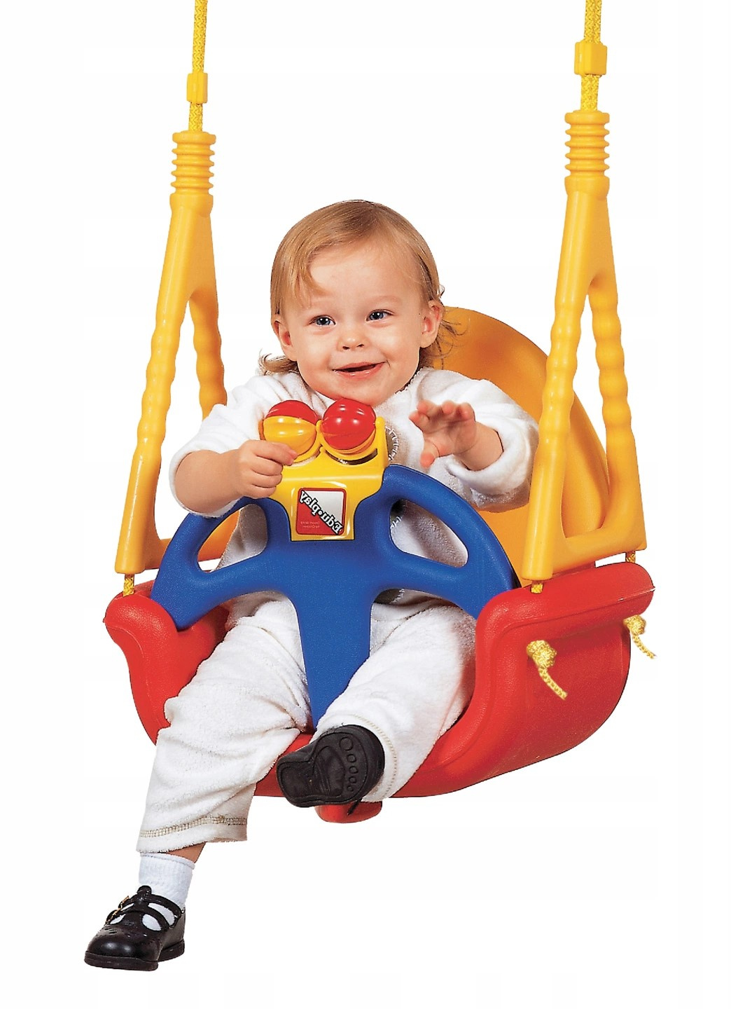 • Kubełkowa huśtawka do ogrodu lub do domu dla dzieci. Posiada regulowane linki oraz barierki ochronne. Dla dzieci od 6 miesiąca życia.