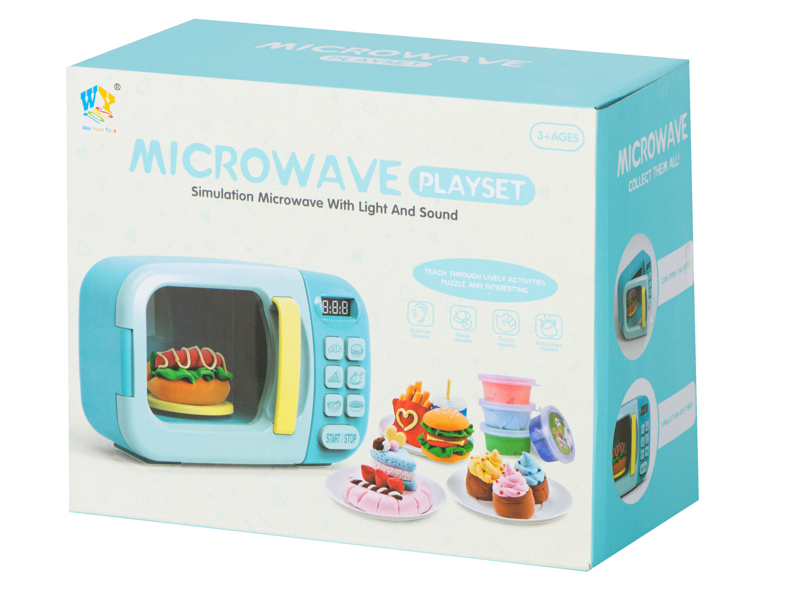 Oto zestaw, który świetnie uzupełni wystrój dziecięcej kuchni - interaktywna kuchenka mikrofalowa z zabawkowym jedzeniem. Mikrofalówka działa zupełnie jak prawdziwe urządzenie, za pomocą przycisków wybierzcie odpowiedni tryb pracy, ustawcie czas i wciśnijcie przycisk START. Tylko nie zapomnijcie włożyć do środka waszych smakołyków ulepionych z plastoliny! Zabawka świetnie sprawdzi się jako prezent dla małych ciekawych świata brzdąców.SKŁAD ZESTAWU:
