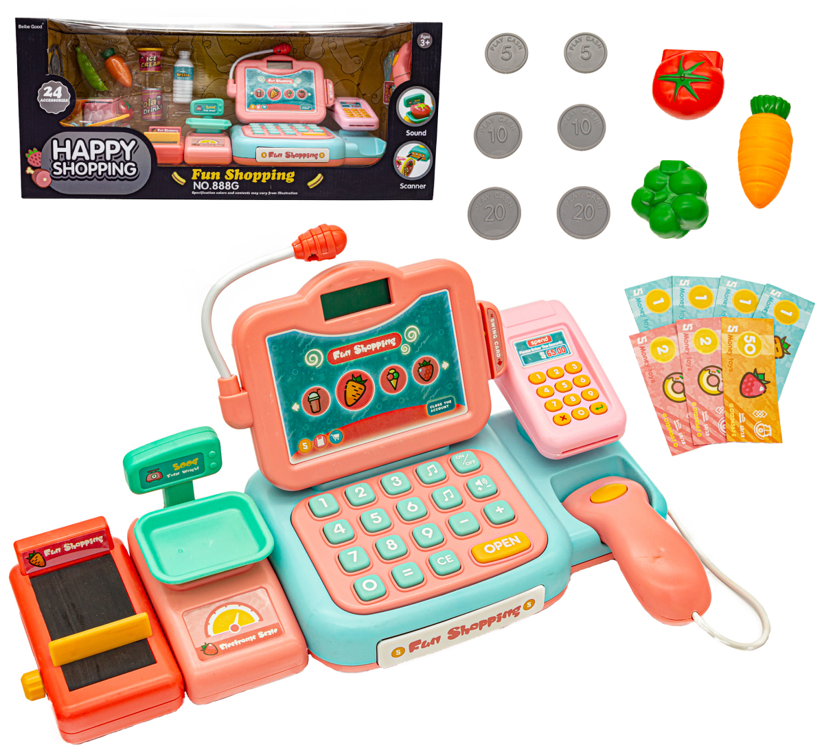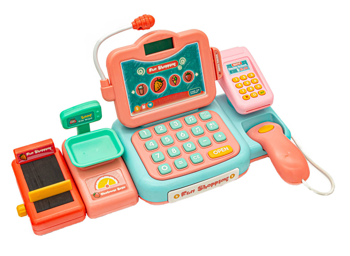 • Duża, różowa kasa fiskalna ze skanerem, kalkulatorem i mnóstwem akcesoriów. Zabawka wspiera prawidłowy rozwój twojego dziecka oraz pobudza jego wyobraźnię. Dla dzieci od lat 3.