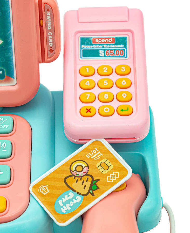 Różowo – niebieska kasa fiskalna dla dzieci będzie cudowną inspiracją do wielu fajnych zabaw. Twoja córka jednego dnia może prowadzić restaurację, innego hotel dla misiów, a trzeciego sklep dla koleżanek. I wreszcie spełnią się wielkie marzenia – dziecko zapłaci swoją kartą bankomatową, a w portfelu znajdzie sporo pieniędzy. Z taką kasą Twoje dziecko zorganizuje naprawdę wielkie zakupy i to bez żadnych ograniczeń.