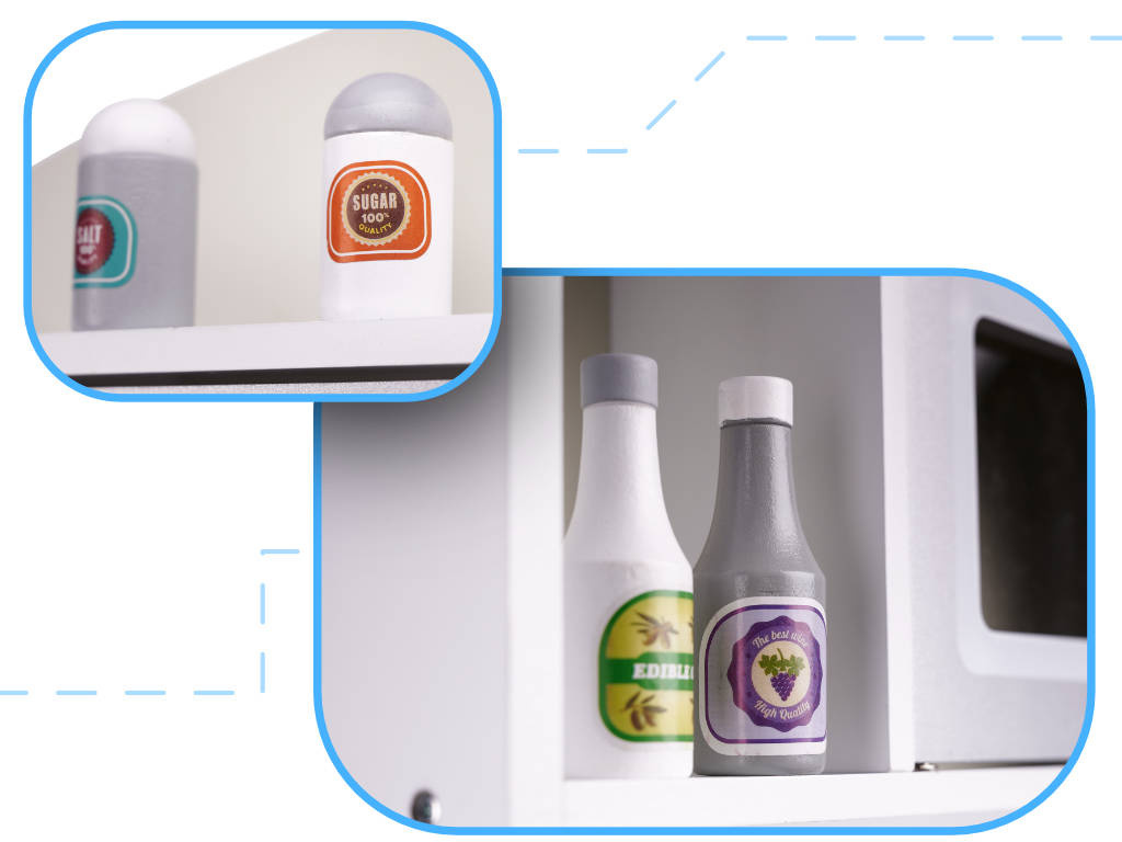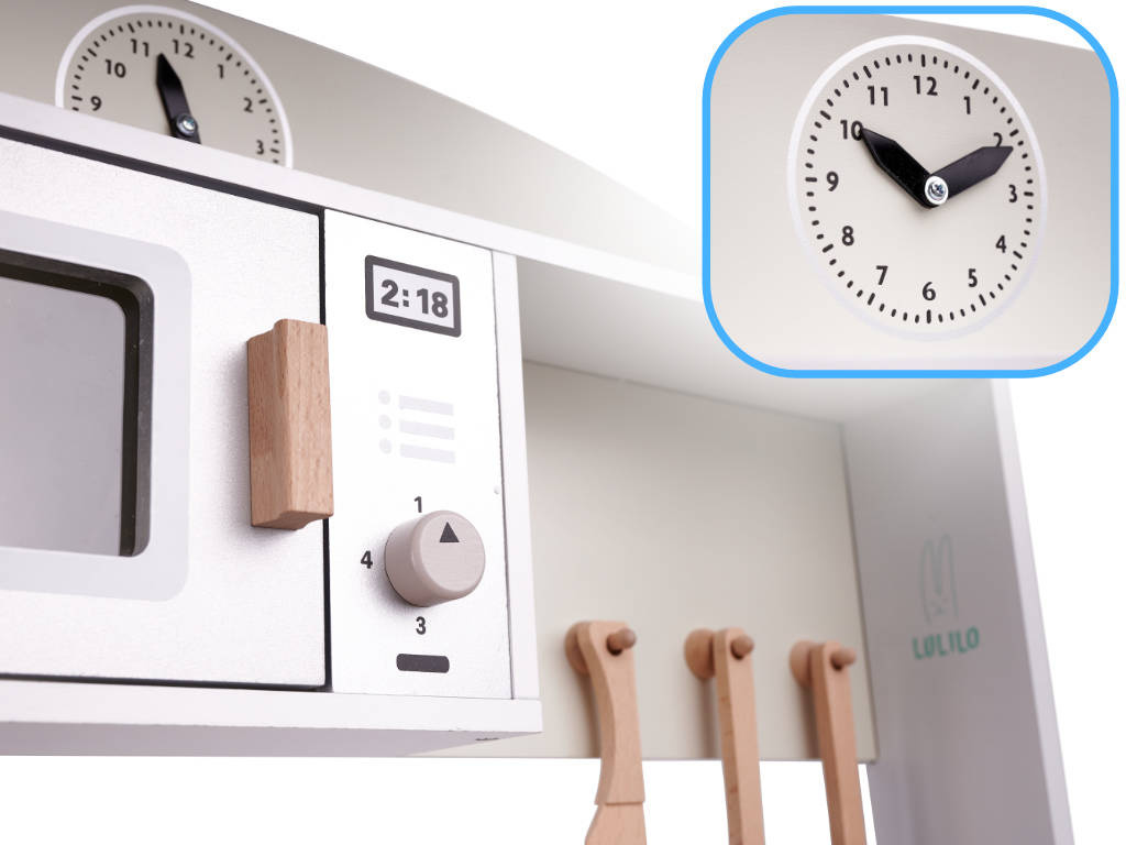 Super zabawa w kucharza i gotowanie a także sprzątanie w kuchni po wykonanych czynnościach. To wszystko jest możliwe dzięki przepięknie wykonanej kuchni. Jest naprawdę gustowna. Oprócz walorów estetycznych posiada bogate wyposażenie. dziecko będzie mogło wykorzystać zlew który można napełnić wodą. Oczywiście jest również mikrofalówka, różne półeczki i szafeczki. Jak w każdej kuchni i ta został wyposażona w kuchenkę z pokrętłami, które wyglądają bardzo realistycznie i przekręcanie ich jest bardzo łatwe.LULILO KUCHNIA DREWNIANA MDF
