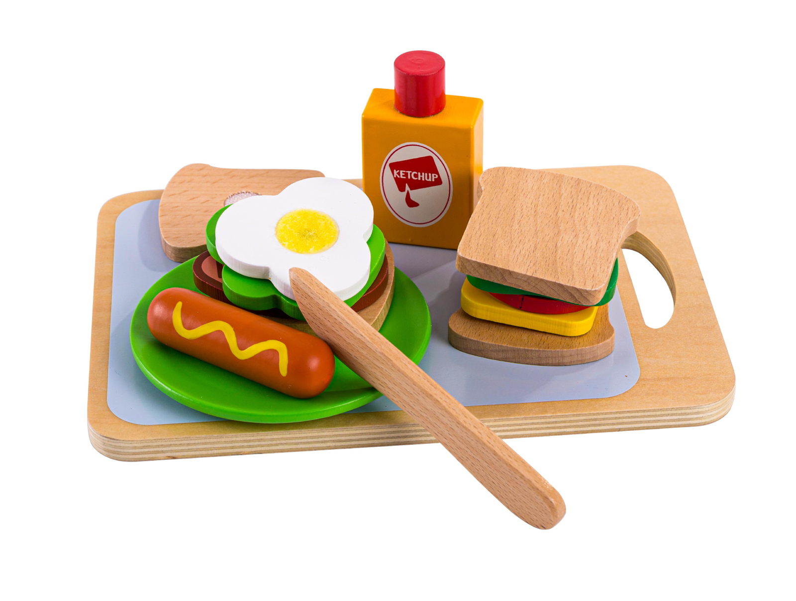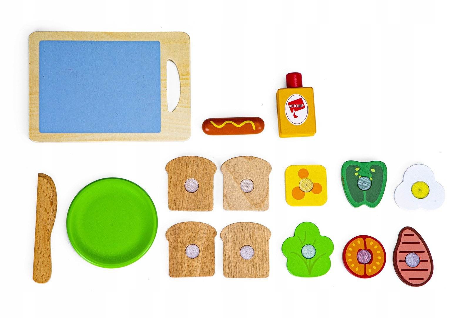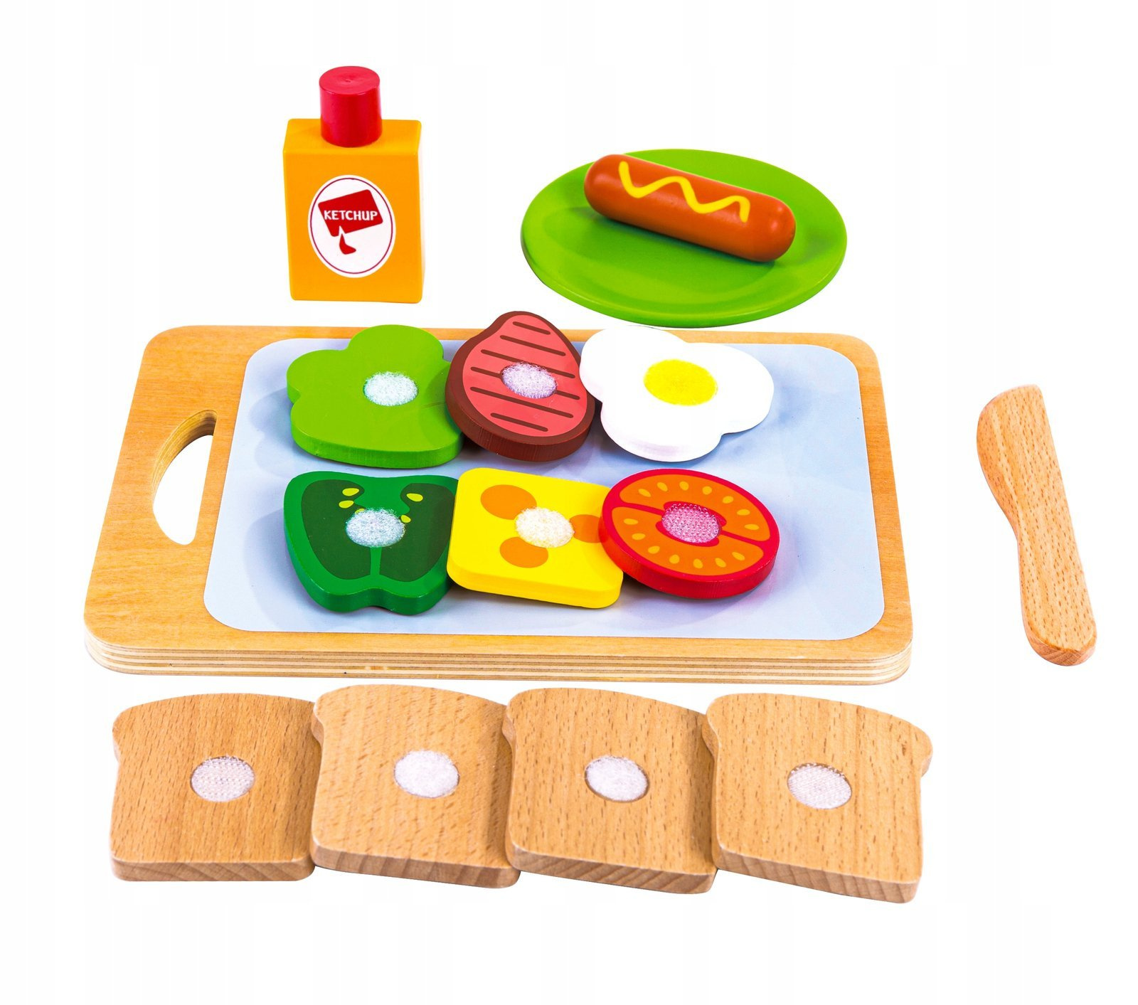 - Zestaw drewnianych akcesoriów do budowania kanapki z deseczką i nożem dla dzieci. Zabawka wspiera prawidłowy rozwój Twojego dziecka oraz pobudza jego wyobraźnię. Dla dzieci od lat 3.