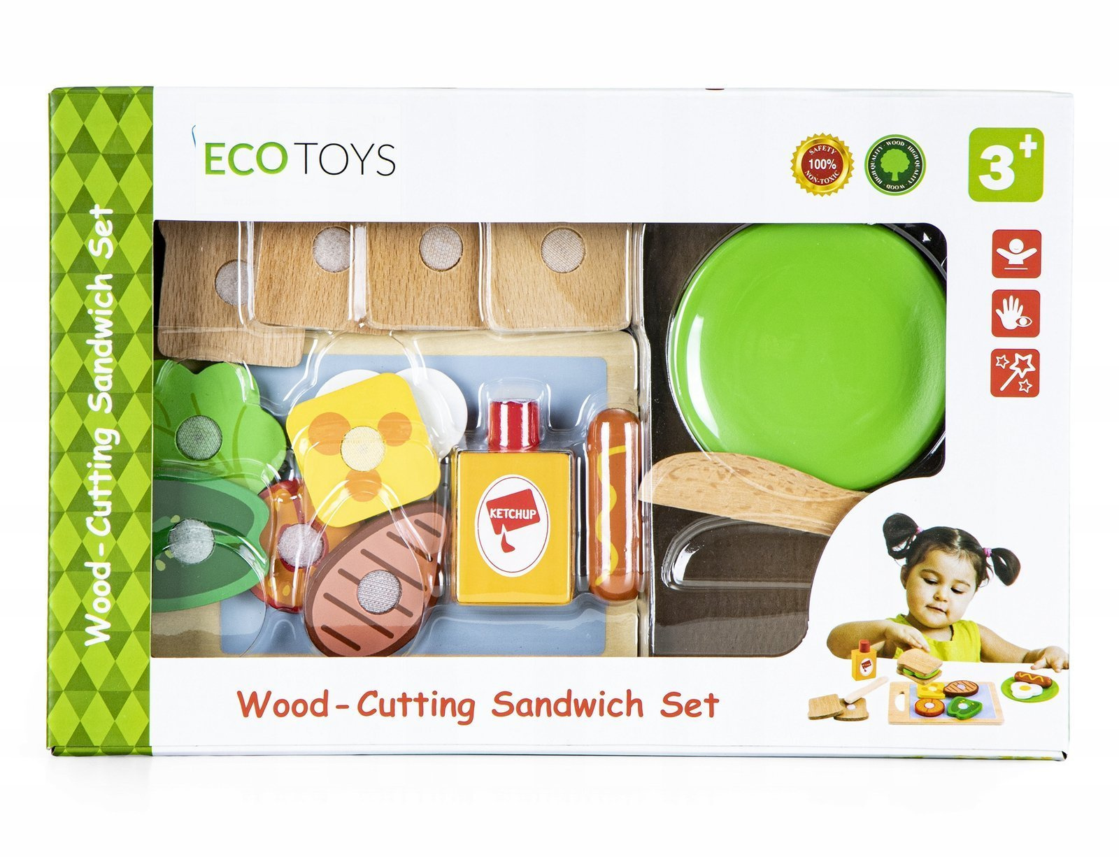 Drewniane jedzenie Kanapka z akcesoriami Zestaw śniadaniowy dla dzieci Ecotoys SAWT18261