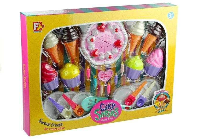 Zestaw urodzinowy Tort Lody Słodkości Cukiernia dla dzieci 30 elementów serwis urodzinowy