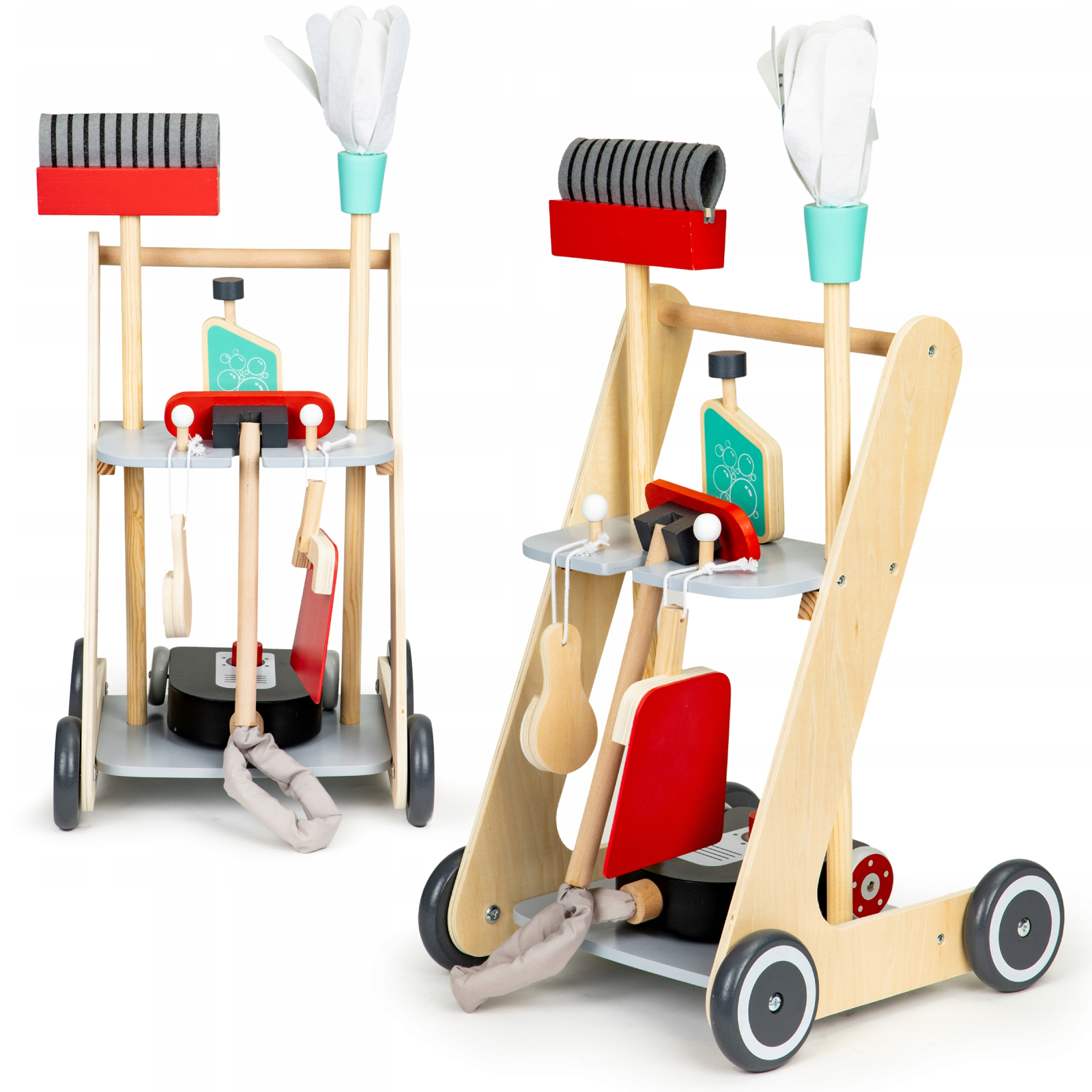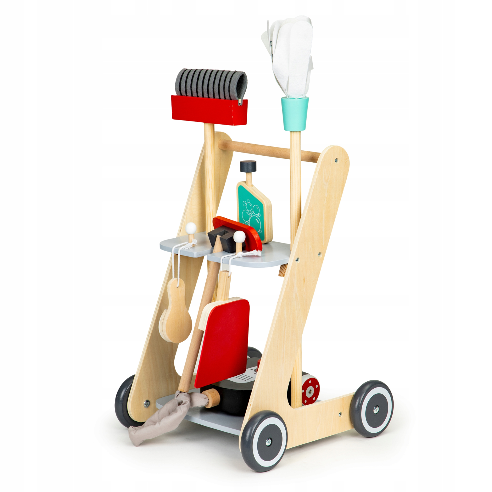 Drewniany zestaw do sprzątania dla dzieci na wózku Odkurzacz i akcesoria ECOTYS 4404