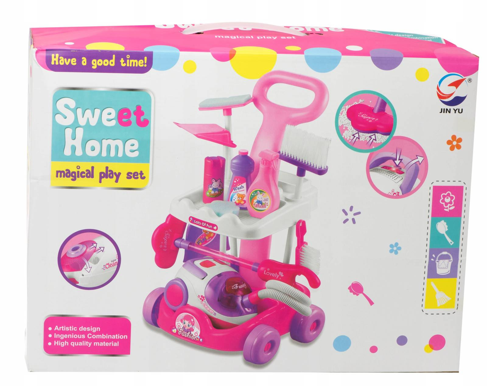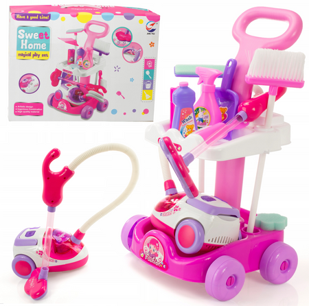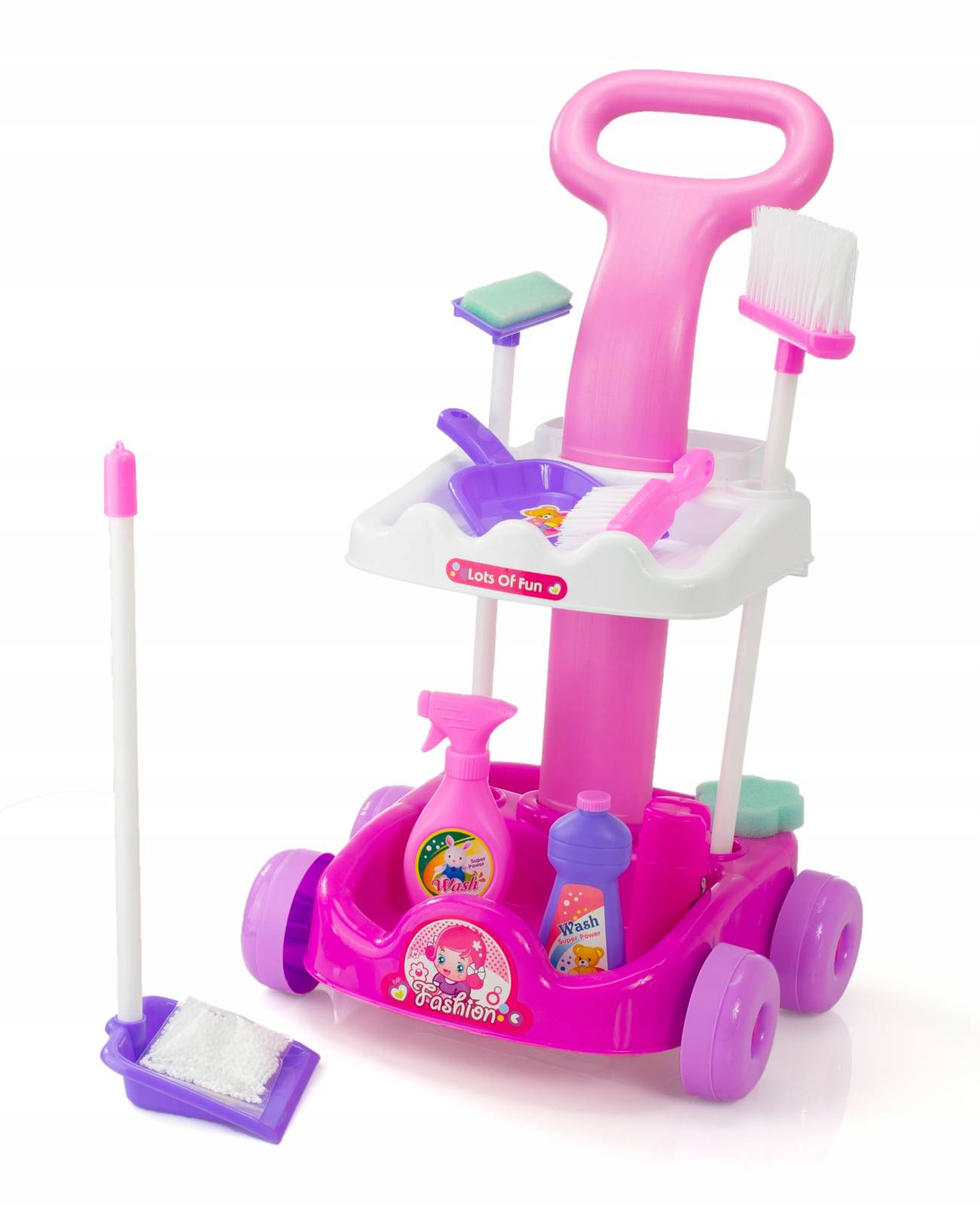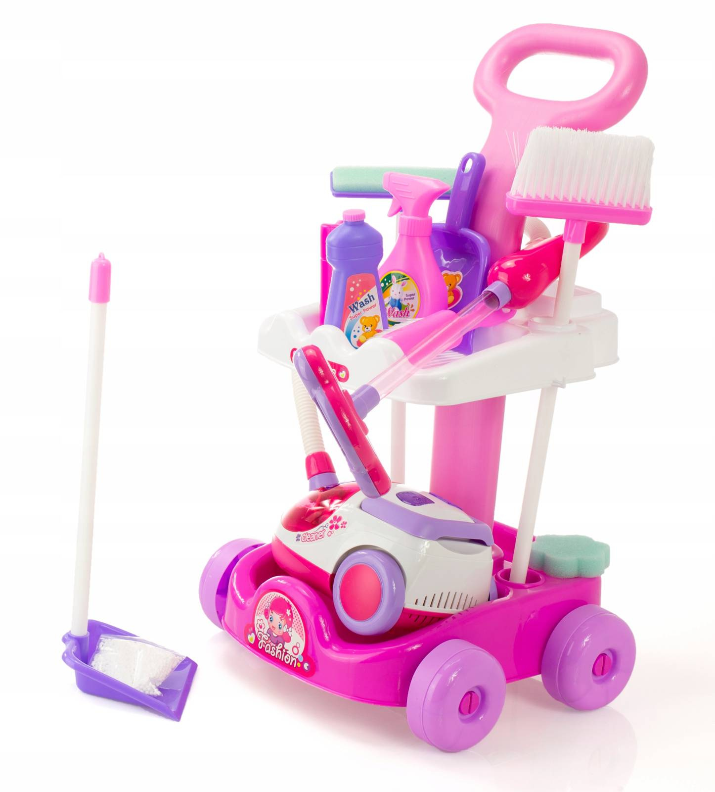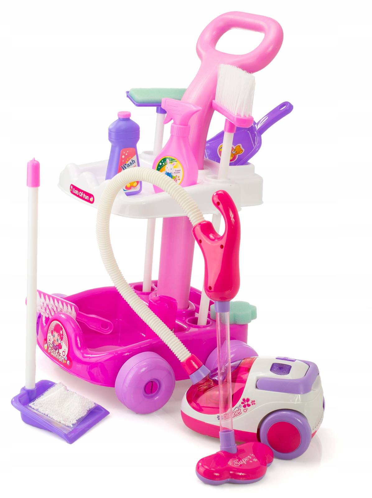 - Zestaw do sprzątania na wózku z odkurzaczem i akcesoriami nauczy Twojego malucha utrzymywania porządku w swoim pokoju oraz pozwoli mu wcielić się w rolę małego gospodarza. Zabawka wspiera poprawny rozwój twojego dziecka. Dla dzieci od lat 3.