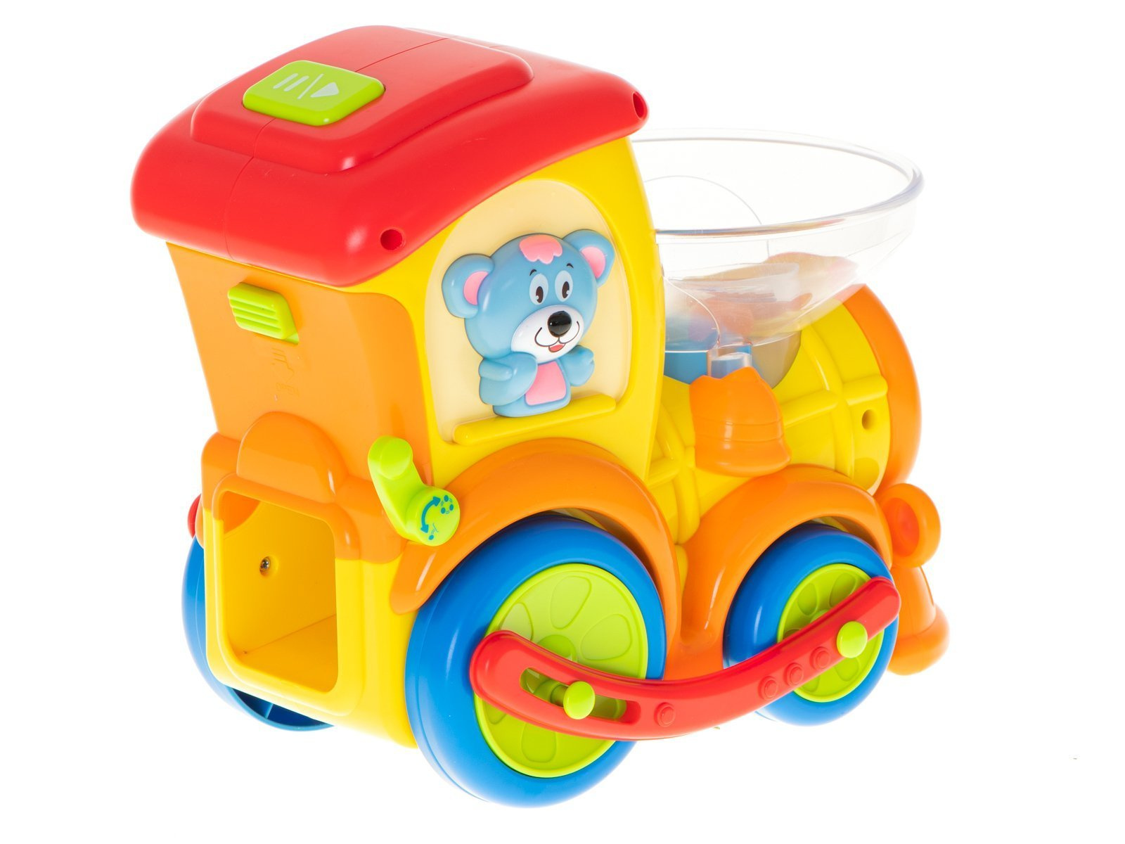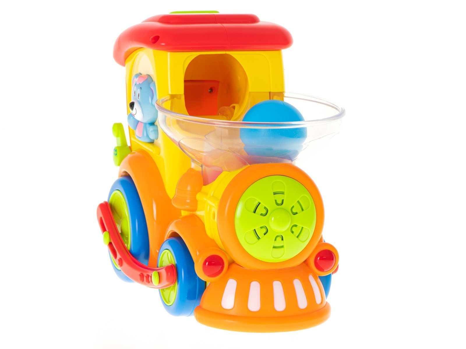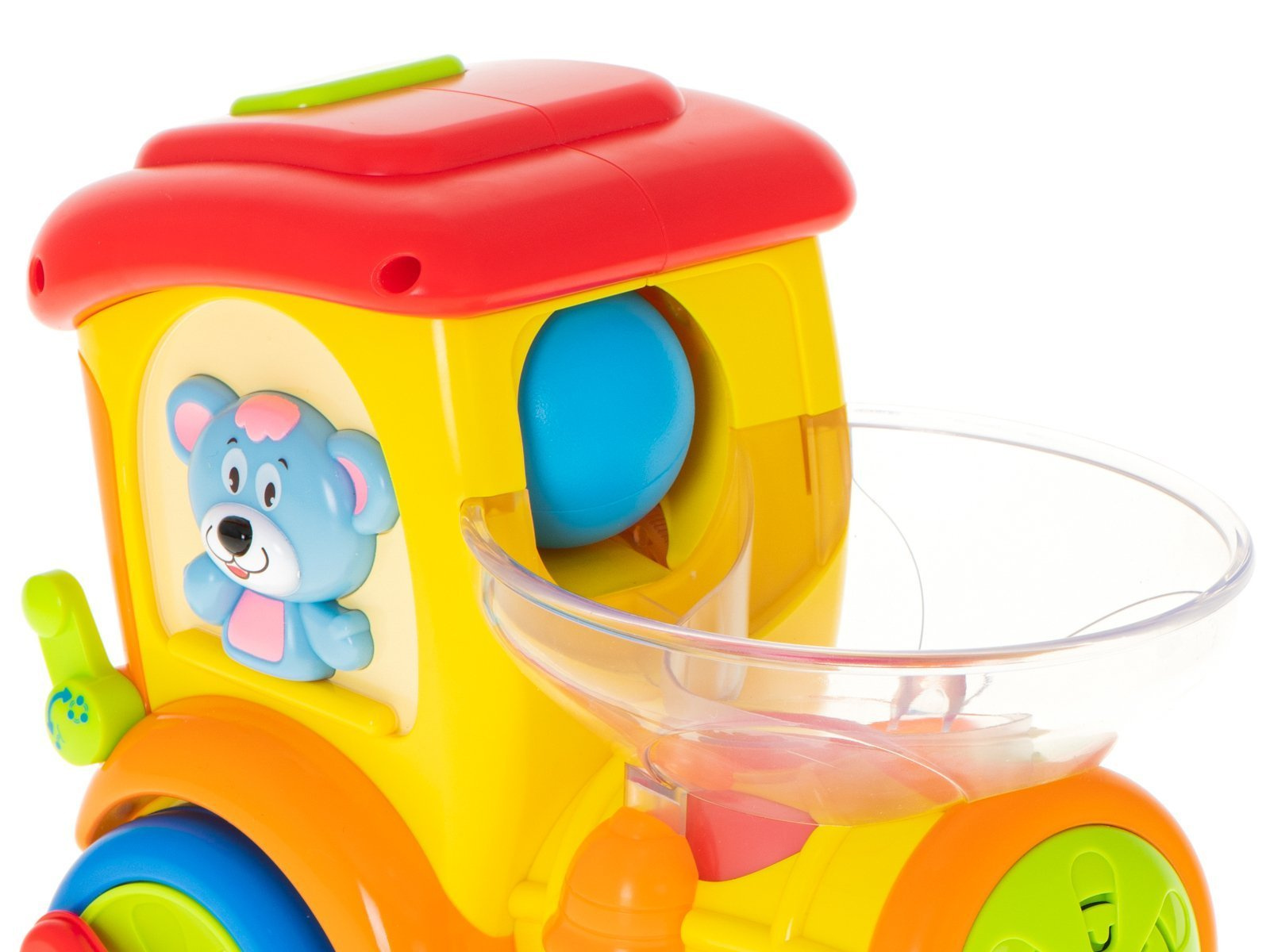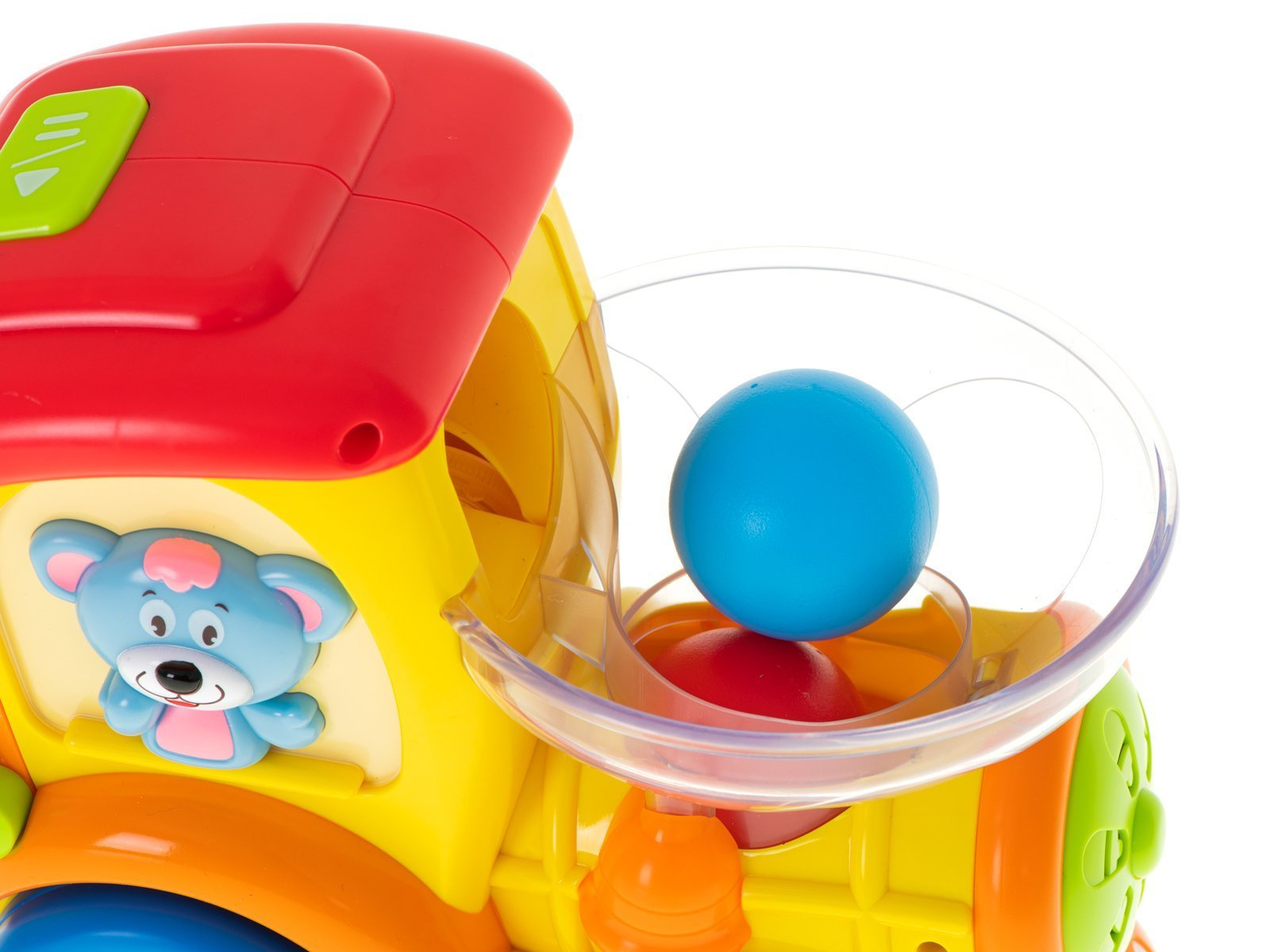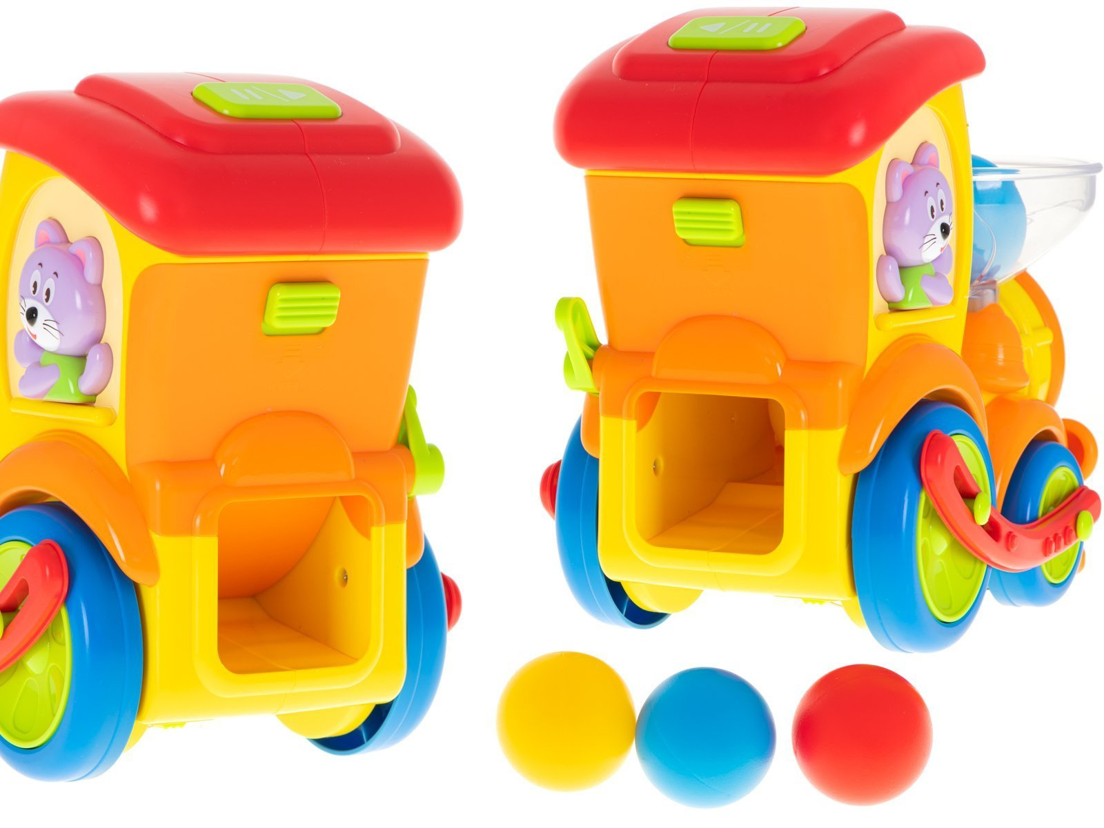 - Edukacyjna ciuchcia wspierająca rozwój i umiejętności maluchów ucząc ich kolorów i kształtów. Wrzucajcie piłeczki do sortera przy akompaniamencie wesołych melodyjek! Dla dzieci od 18 miesiąca życia.