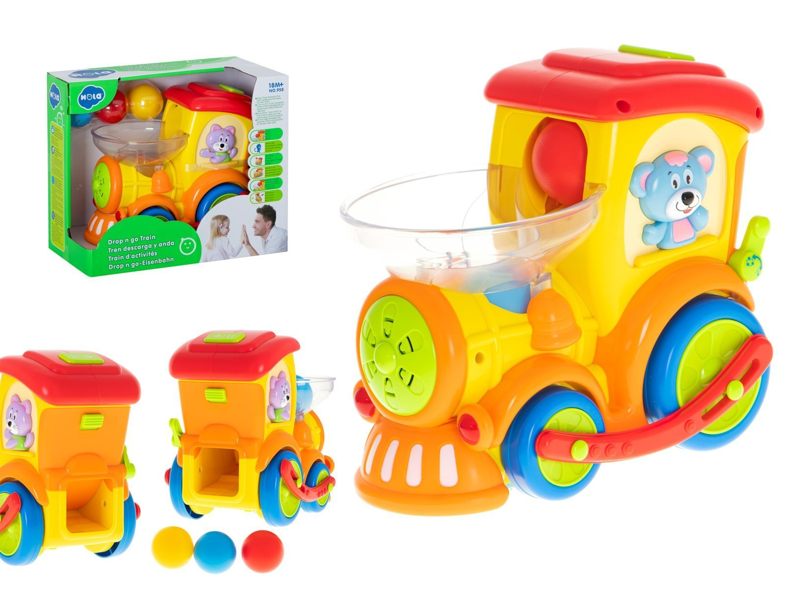 Interaktywna lokomotywa Pociąg dla dzieci Edukacyjna ciuchcia z piłeczkami Nauka celowania HOLA 958