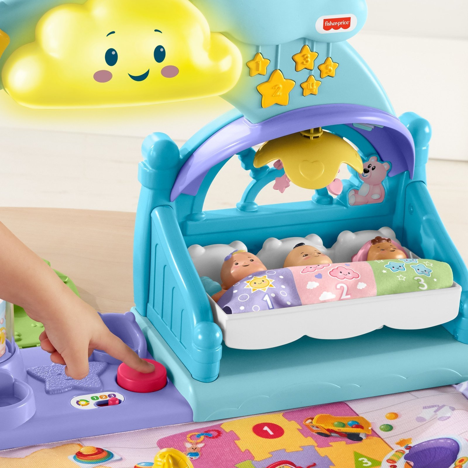 Niezwykła zabawka od marki FISHER-PRICE przedstawiająca wesołe przedszkole, w którym dzieci mogą bawić się małymi ludzikami karmiąc je i układając je do snu! Podczas opieki nad bobasami, Twoja pociecha usłyszy wesołe piosenki i wypowiedzi nawiązujące do kolorów, cyferek i wielu innych. Zabawę uatrakcyjniają migoczące światełka, które pojawiają się po naciśnięciu przycisków dostępnych na planszy. Zestaw został wyposażony w technologię ‘Poziomy nauki’, która pozwala na dostosowanie zabawki do wieku dziecka. Wygodna, dołączona do zestawu rączka, pozwala Wam na jego wygodne przenoszenie z miejsca na miejsce, a dzięki możliwości złożenia planszy, nie zajmie ona dużo miejsca w pokoiku dziecięcym. Wspieraj swojego malucha w jego poprawnym rozwoju i wybierz zabawki od FISHER-PRICE!ZAWARTOŚĆ ZESTAWU LITTLE PEOPLE:
