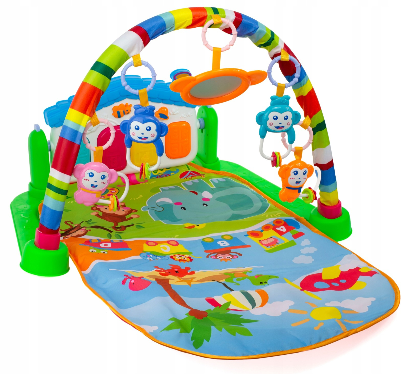Opinie o Mata edukacyjna dla dzieci interaktywna muzyczna pianinko grzechotki małpki lusterko 4w1
