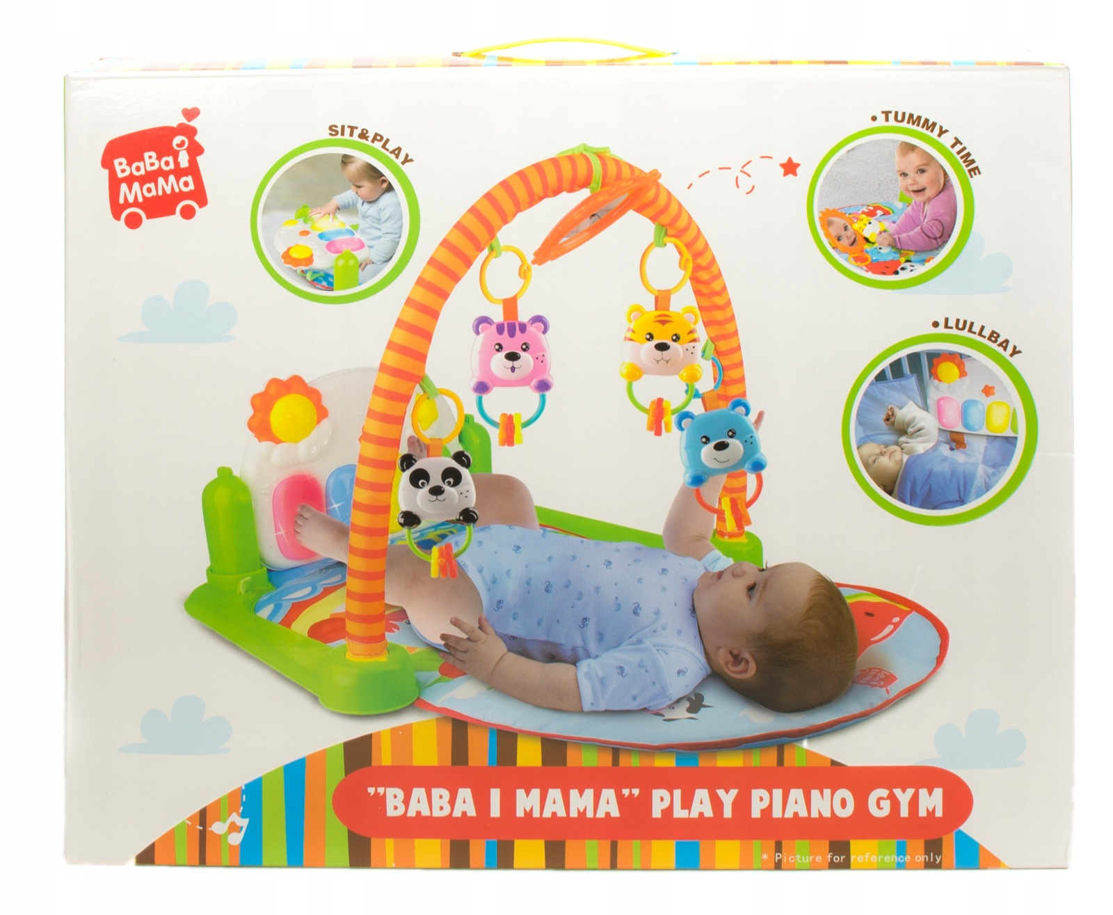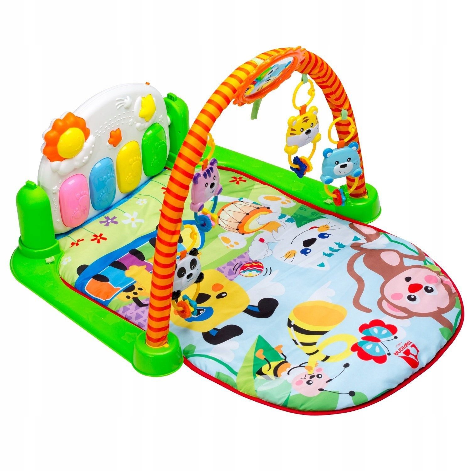 Miękka i kolorowa mata z pianinkiem jest rewelacyjnym wsparciem dla rodziców. Możesz na niej położyć malucha już od pierwszych dni jego życia. Docenisz to zwłaszcza podczas wizyty u znajomych, gdzie nie ma łóżeczka, a trzymanie Maluszka cały czas na rękach, jest dość uciążliwe. Mata dla dzieci sprawdzi się również, gdy Maluch potrafi już leżeć na brzuszku i siadać. Zabawa z pianinkiem i zawieszkami również wtedy dostarczy mu wiele ciekawych doznań i wrażeń.DANE TECHNICZNE: