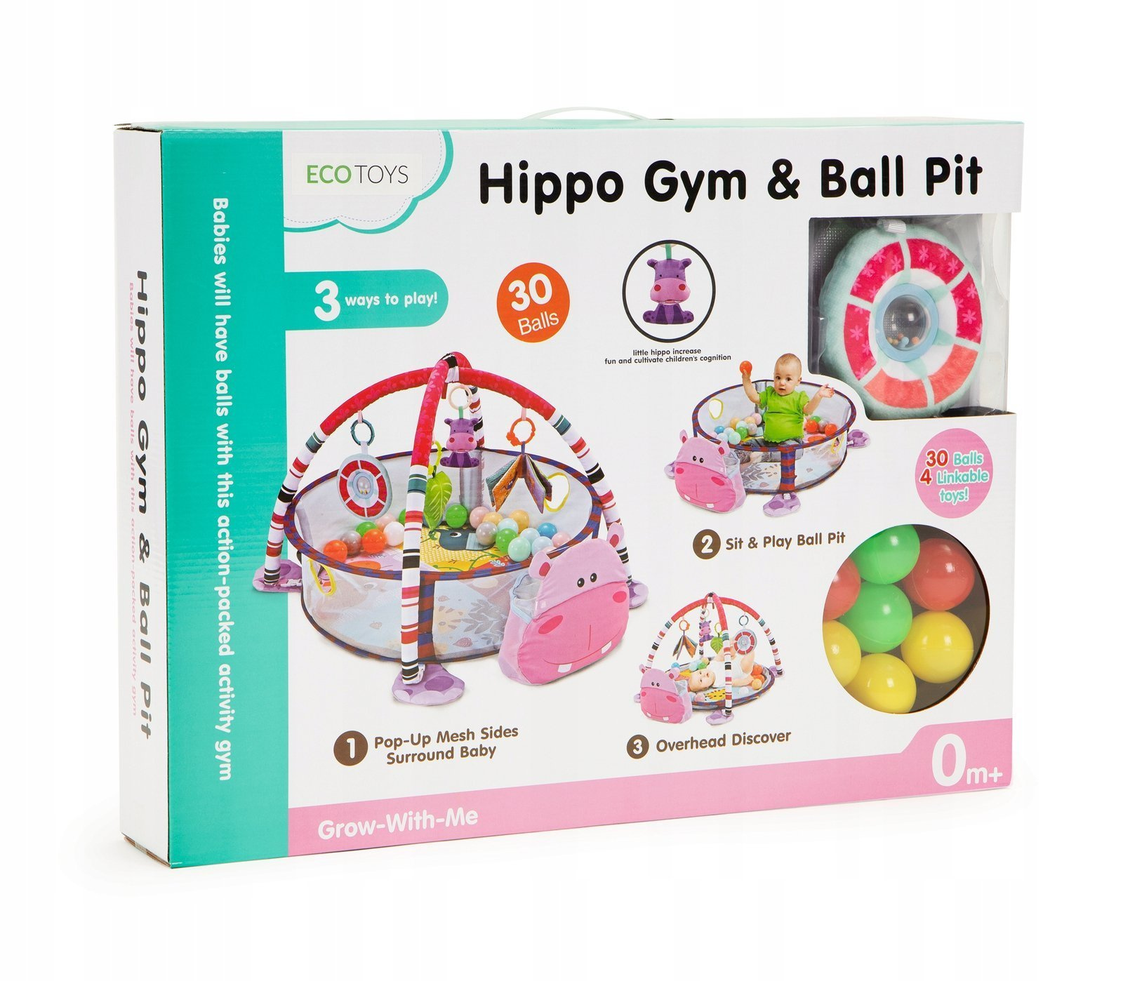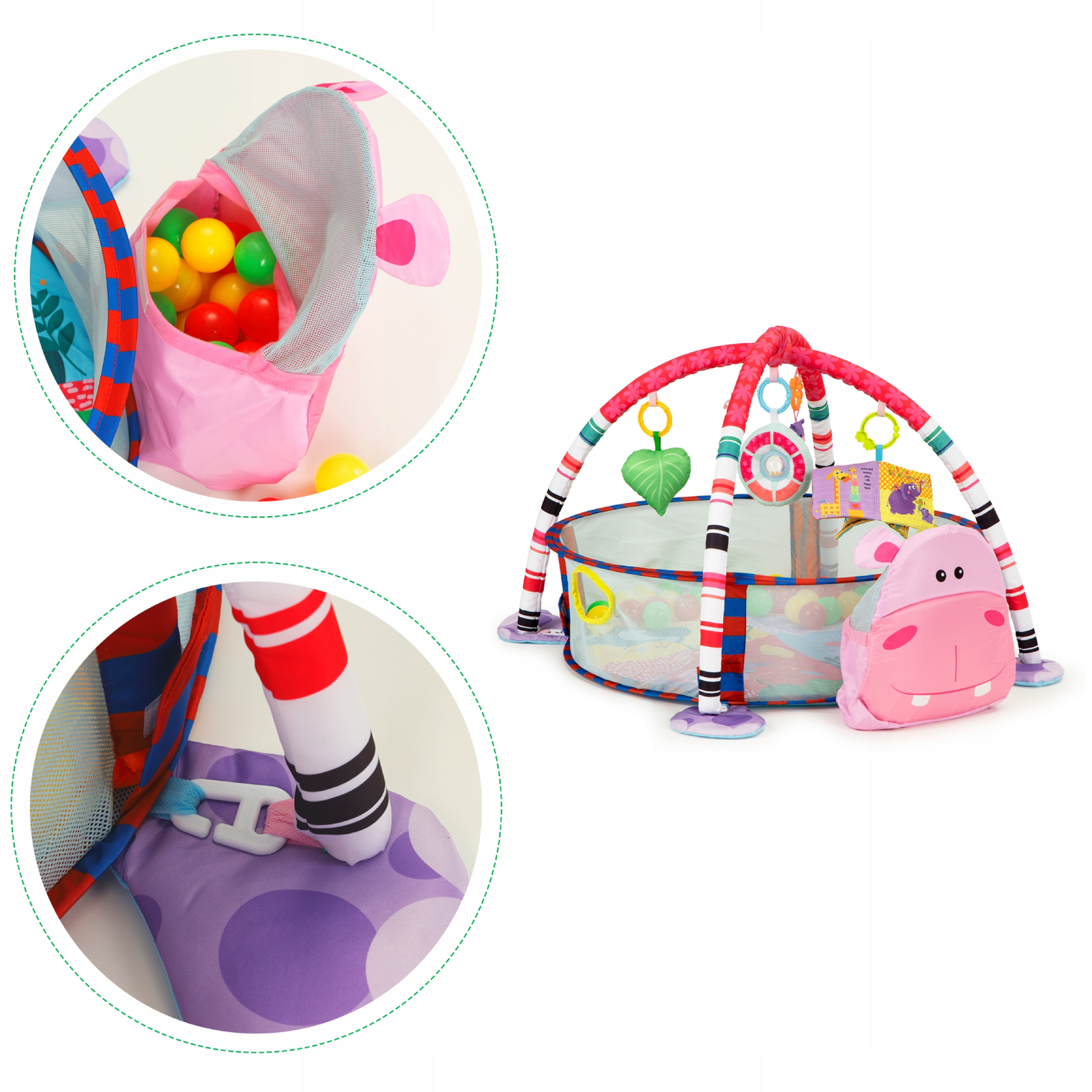Wielofunkcyjna duża mata edukacyjna dla dzieci Kojec z piłkami Hipopotam maskotki 3w1