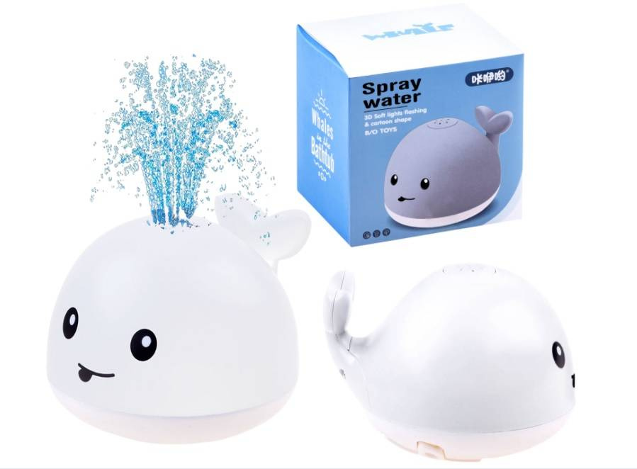 Tryskająca woda i kolorowe światełka spodobają się każdemu maluchowi. Zabawkę wykonano z trwałych i bezpiecznych materiałów co gwarantuje długi czas użytkowania. Do działąnia wielorybek potrzebuje trzech baterii 1,5V AAA (małe paluszki) które nie zostały ujęte w zestawie.Zapakowany w kartonowe pudełko będzie świetnym pomysłem na sympatyczny prezent dla dziecka i jego rodziców. Zabawka pobudzi kreatywność i wyobraźnię dziecka jednocześnie odsuwając jego myśli od czynności pielęgnacyjnych i czyniąc kąpiel przyjemniejszą.