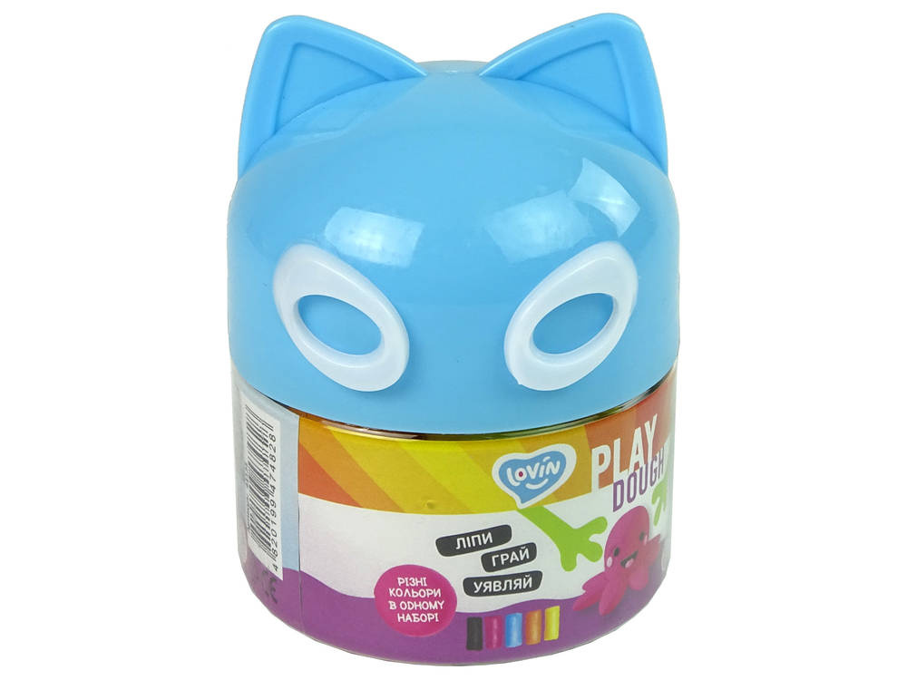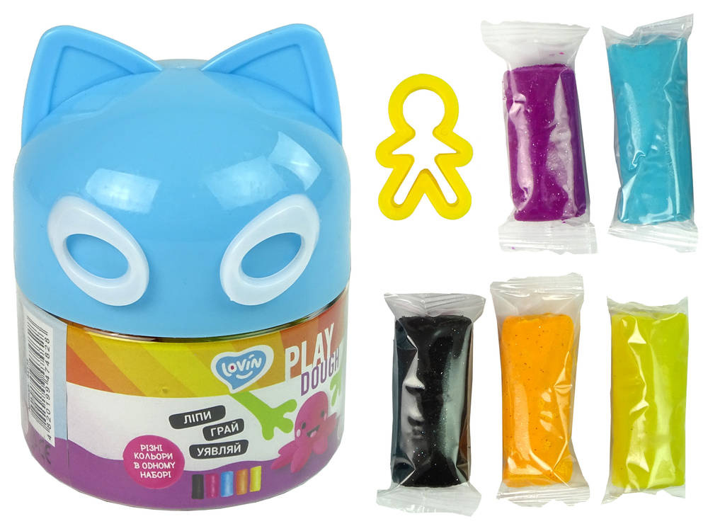 - Zestaw składa się z 5 kolorowych tub z ciastoliną oraz foremki. Wszystkie elementy znajdują się w pudełku z wizerunkiem kota. Dla dzieci powyżej 3 roku życia.