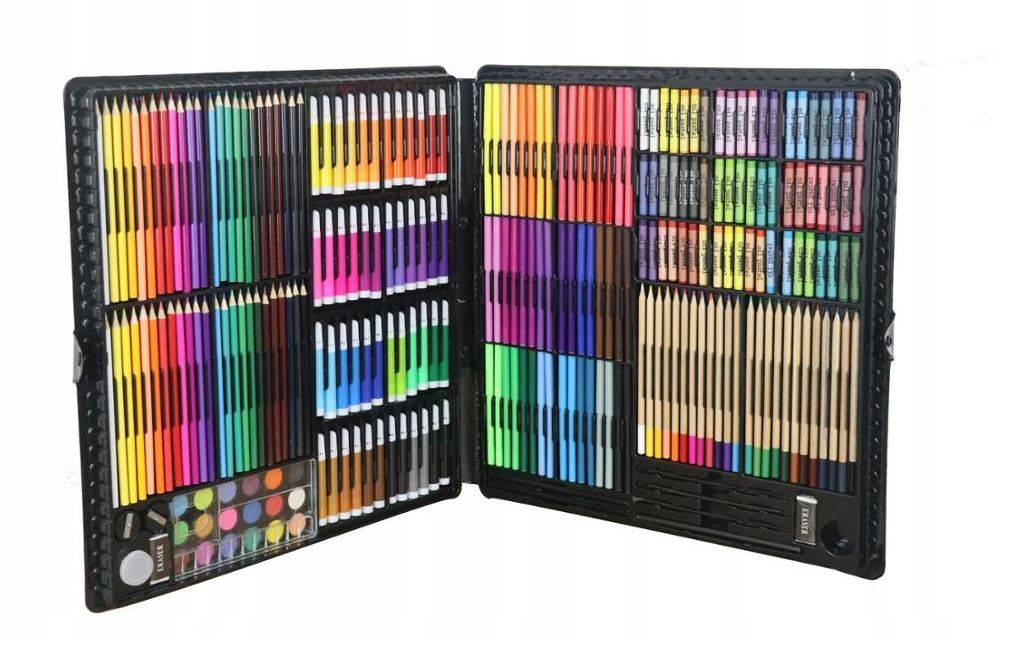 - Duży zestaw dla dziecka lubiącego rysować oraz malować. Zagwarantuje różnorodność w wyborze przyboru oraz koloru. Wszystkie przedmioty zostały zapakowane w poręczną walizkę.