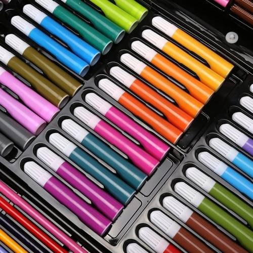 Zestaw różnokolorowych przedmiotów do malowania, które pozwolą na stworzenie prawdziwego dzieła sztuki. Zawiera on różnego rodzaju kredki, mazaki oraz farbki. Przybory świetnie się sprawdzą zarówno w domu, jak i w szkole, czy też na uczelni. Pozwolą na dodanie koloru oraz wykończenie prac. Dzięki różnorodności w kolorach, można dobrać taką kredkę lub pisak, który idealnie wpasuje się w wizję obrazu. Podczas rysowania rozwija się kreatywność, wyobraźnię oraz precyzję ruchów ręki.ZESTAW ARTYSTYCZNY DO RYSOWANIA 288 ELEMENTÓW